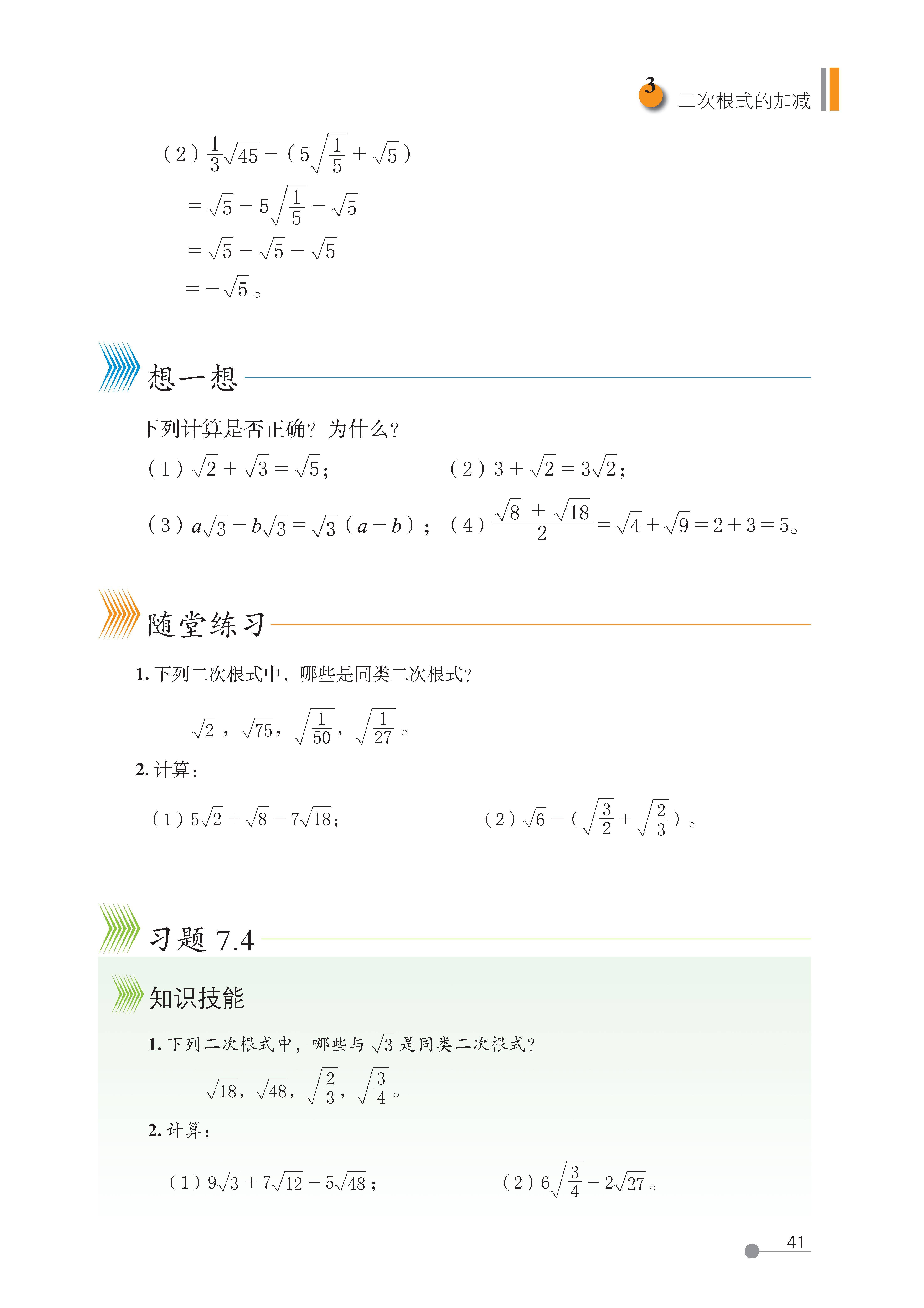 2. 分母有理化的步骤(如含分母√a 或√a±√b 的变形) 中,知识点相对独立,运算有固定规则,虽需细心,但无复杂逻辑关联,练熟即可掌握