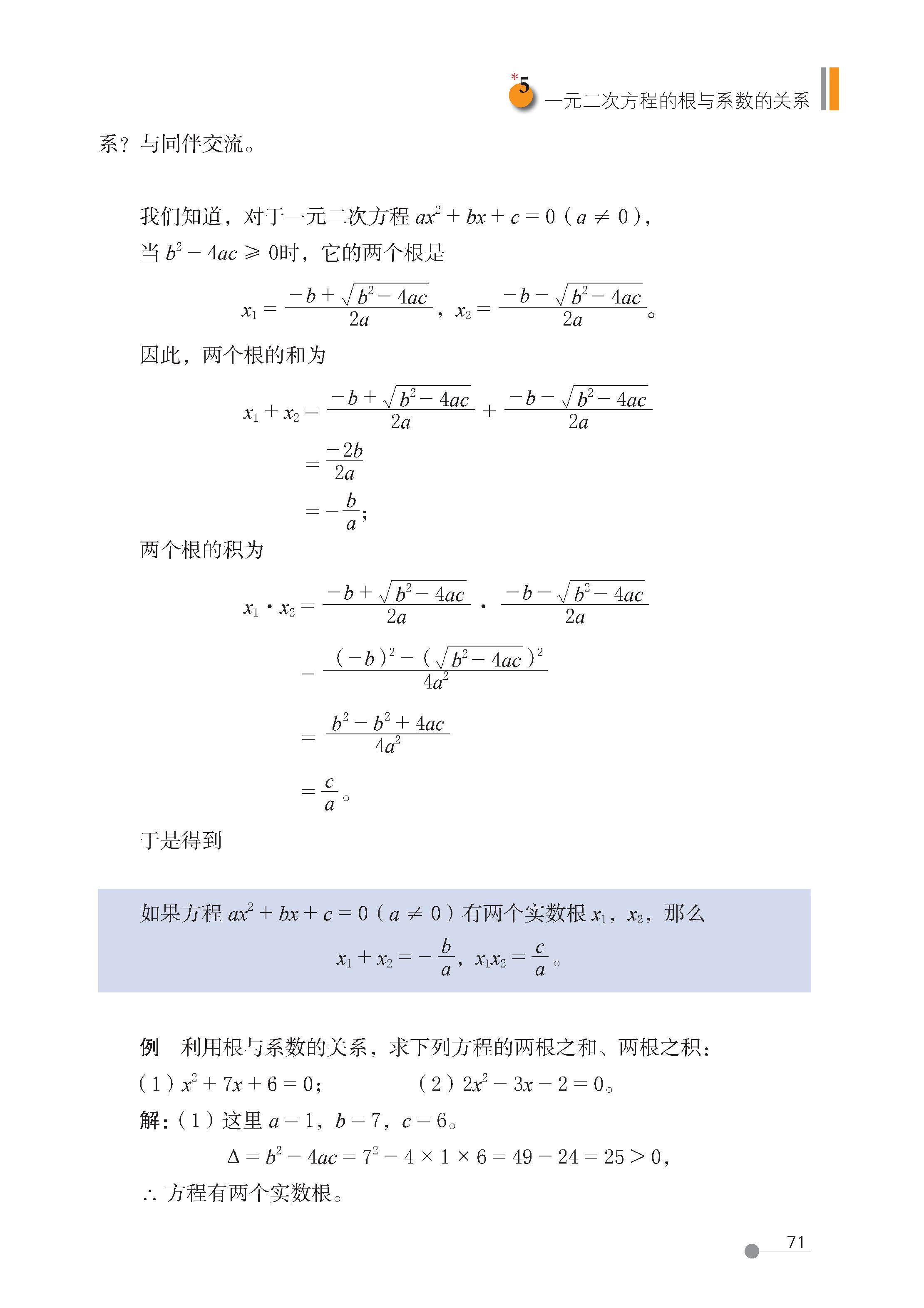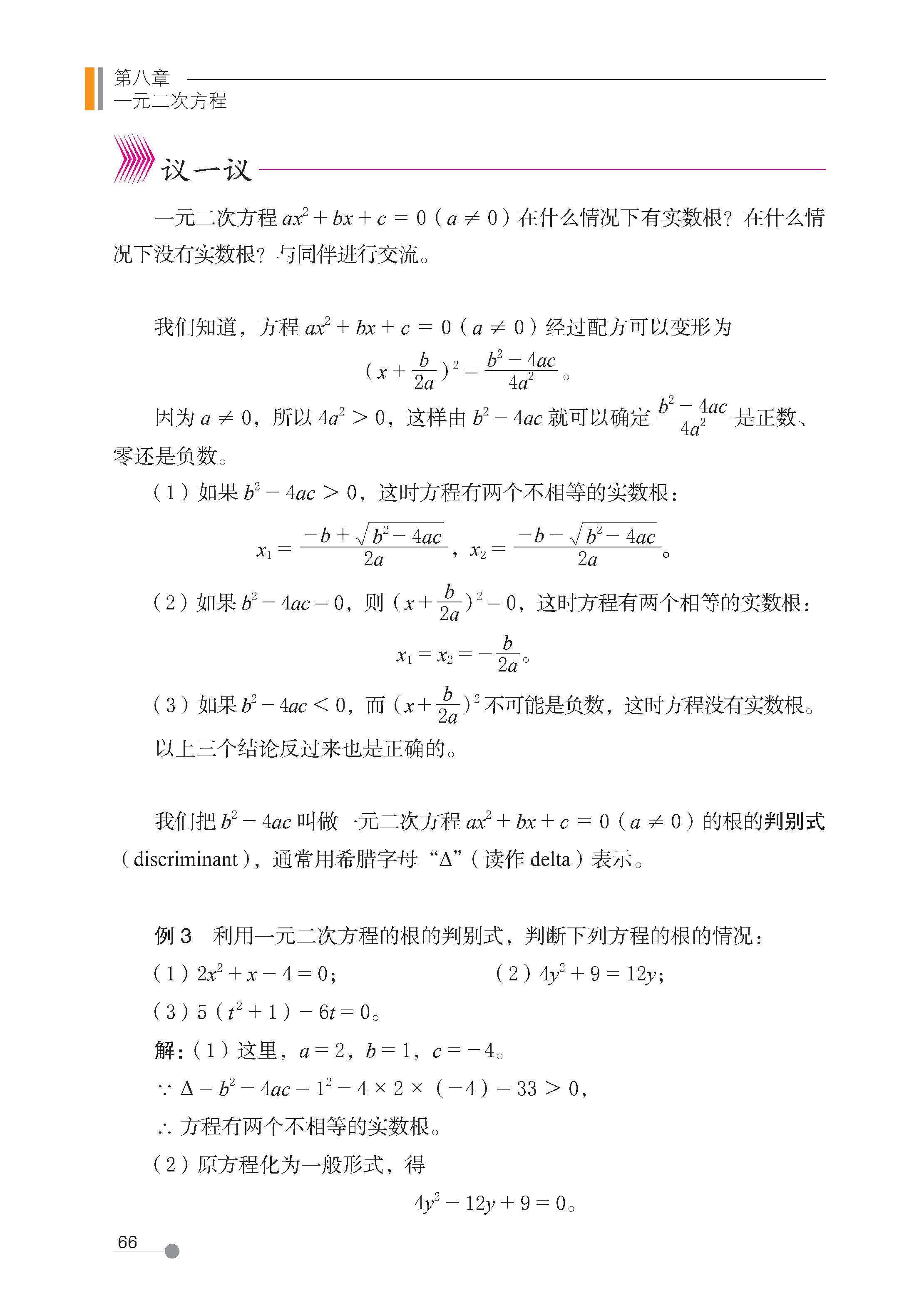 2. 判别式(Δ=b²-4ac)与根的情况的关联;