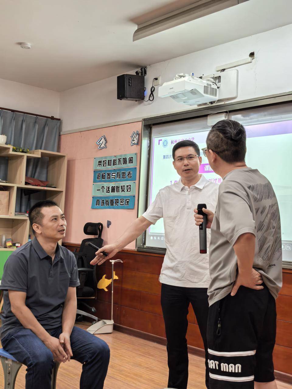 “以前儿子跟我没话聊,现在我每周来‘爸爸班’学教育,还会写鼓励贴,儿子跟我越来越亲近,一个月说的话比以前一年都多!”不久前,杭州建兰中学第四期“爸爸班”结课现场,810班学生家长洪涛(化名)感慨道。