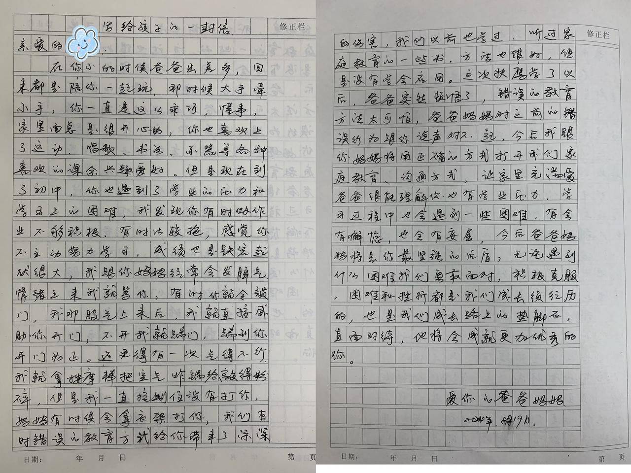 “爸爸班”学员给孩子写的信。受访者供图