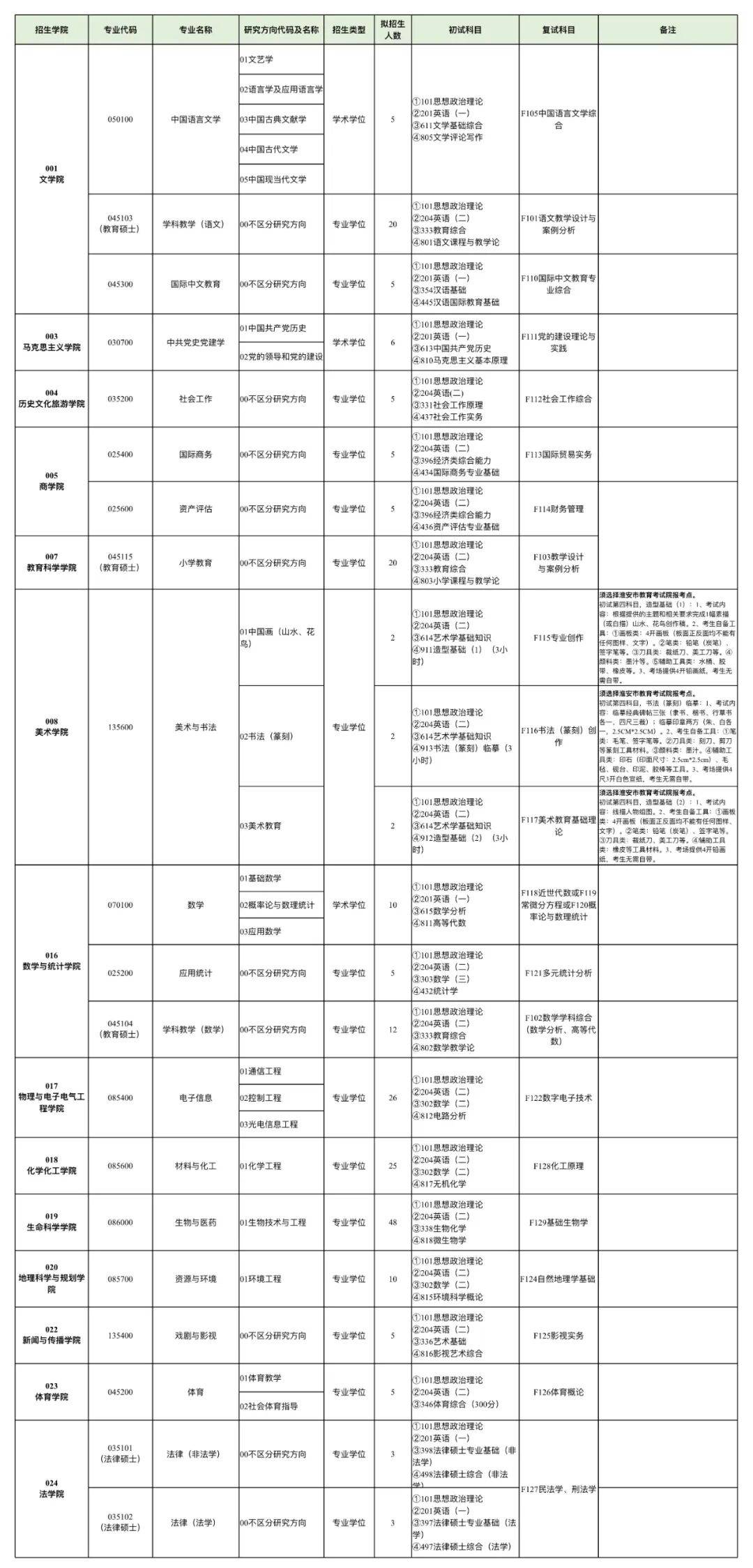 2. 考试科目:我校初试科目分为全国统一命题科目和自命题科目。全国统一命题科目有101思想政治理论、201英语(一)、204英语(二)、302数学(二)、303数学(三)、333教育综合、396经济类综合能力、397法律硕士专业基础(法学)、398法律硕士专业基础(非法学)、497法律硕士综合(法学)、498法律硕士综合(非法学)。全国统一命题科目的命题工作由教育部教育考试院统一组织。其余科目均为我校自命题,详见我校招生专业目录。