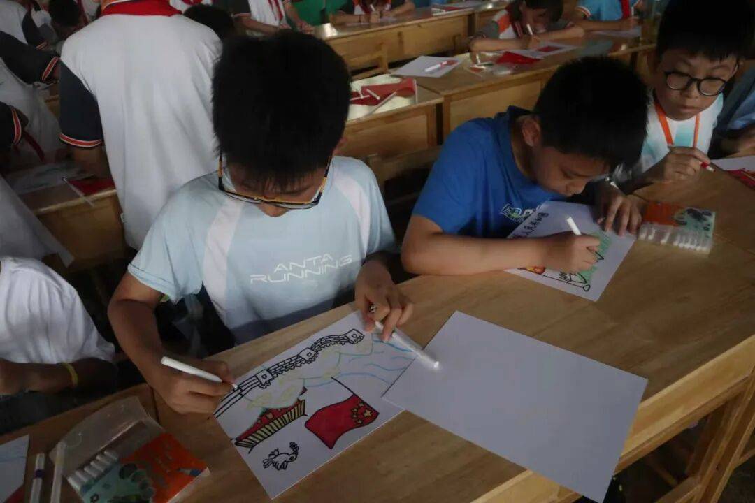 移步金工车间,“笔绘山河”环节已准备就绪——画纸铺开,颜料、画笔整齐摆放,赣、港、澳三地学生围在桌前共同创作,一笔笔勾勒,一抹抹色彩,用心描绘祖国大美山河、城市地标。孩子们一边调色,一边交流,现场快门声不断。创作结束后,孩子们举着作品合影,笑容格外灿烂。