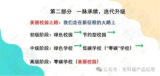 绿色校园->节约型校园->低碳校园 ->零碳校园