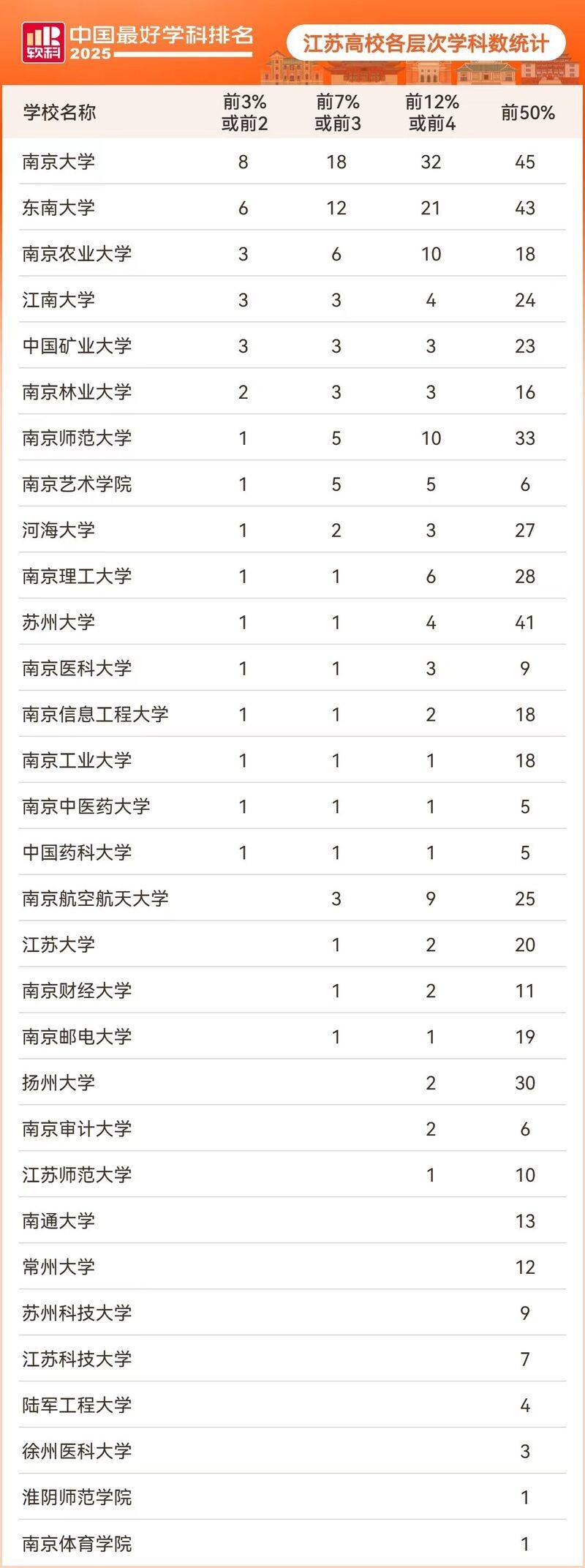 原题:12个冠军学科!上榜学科数全国第二!江苏高校2025软科中国最好学科排名成绩单出炉