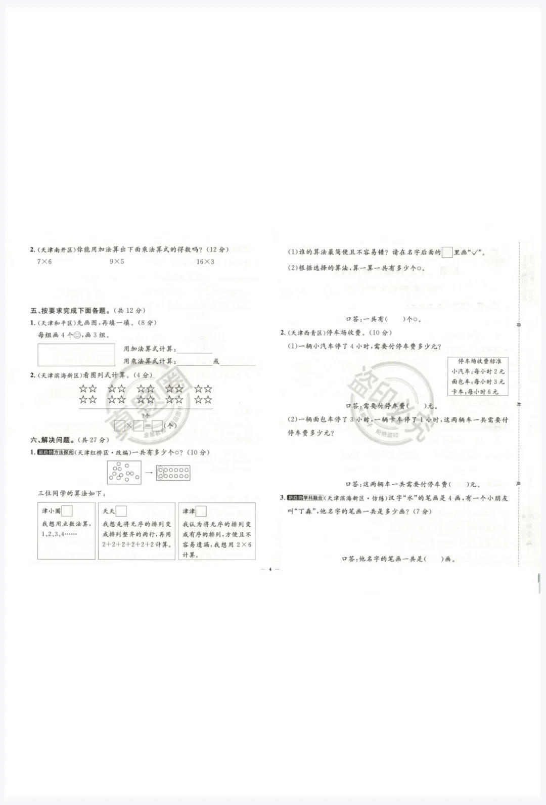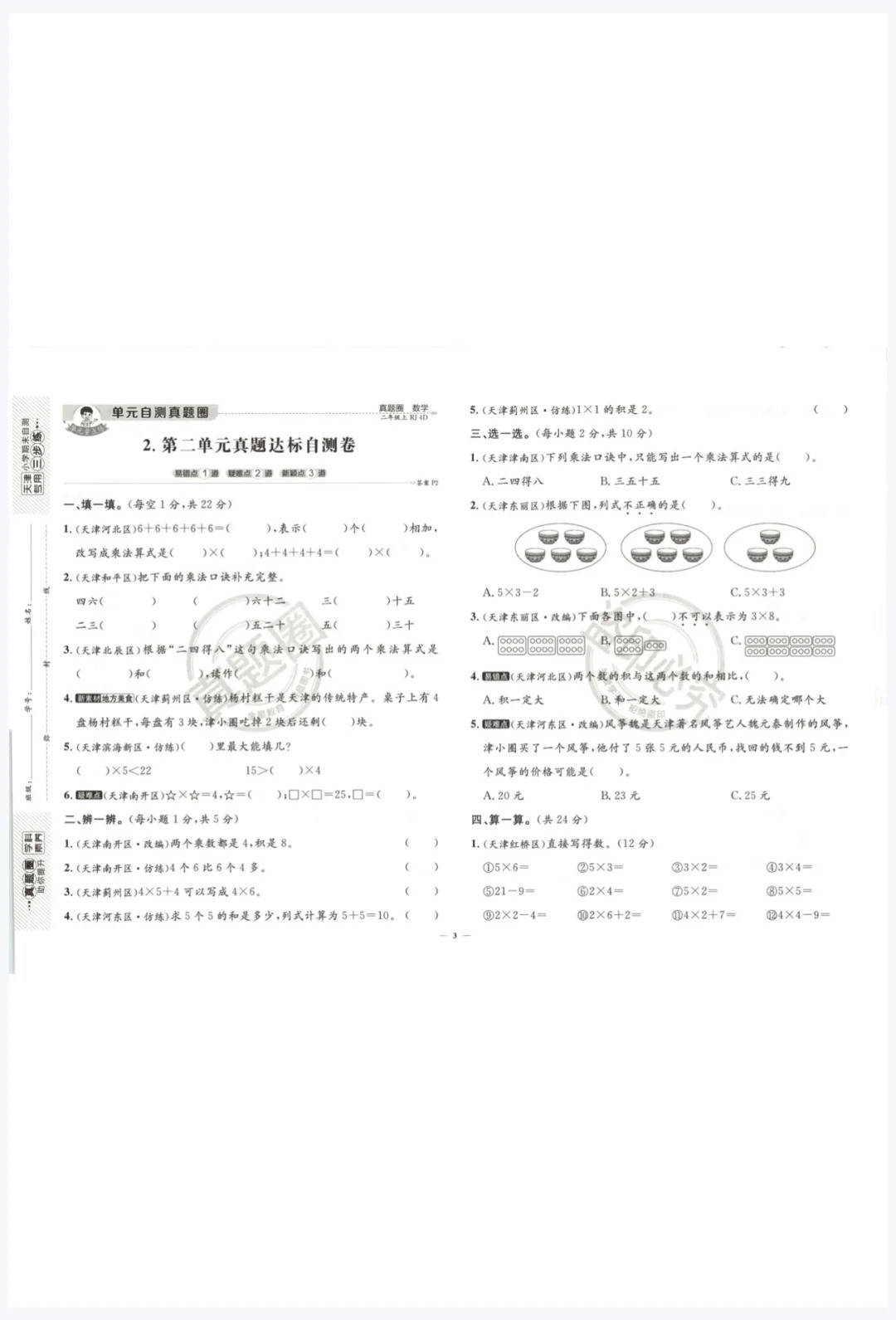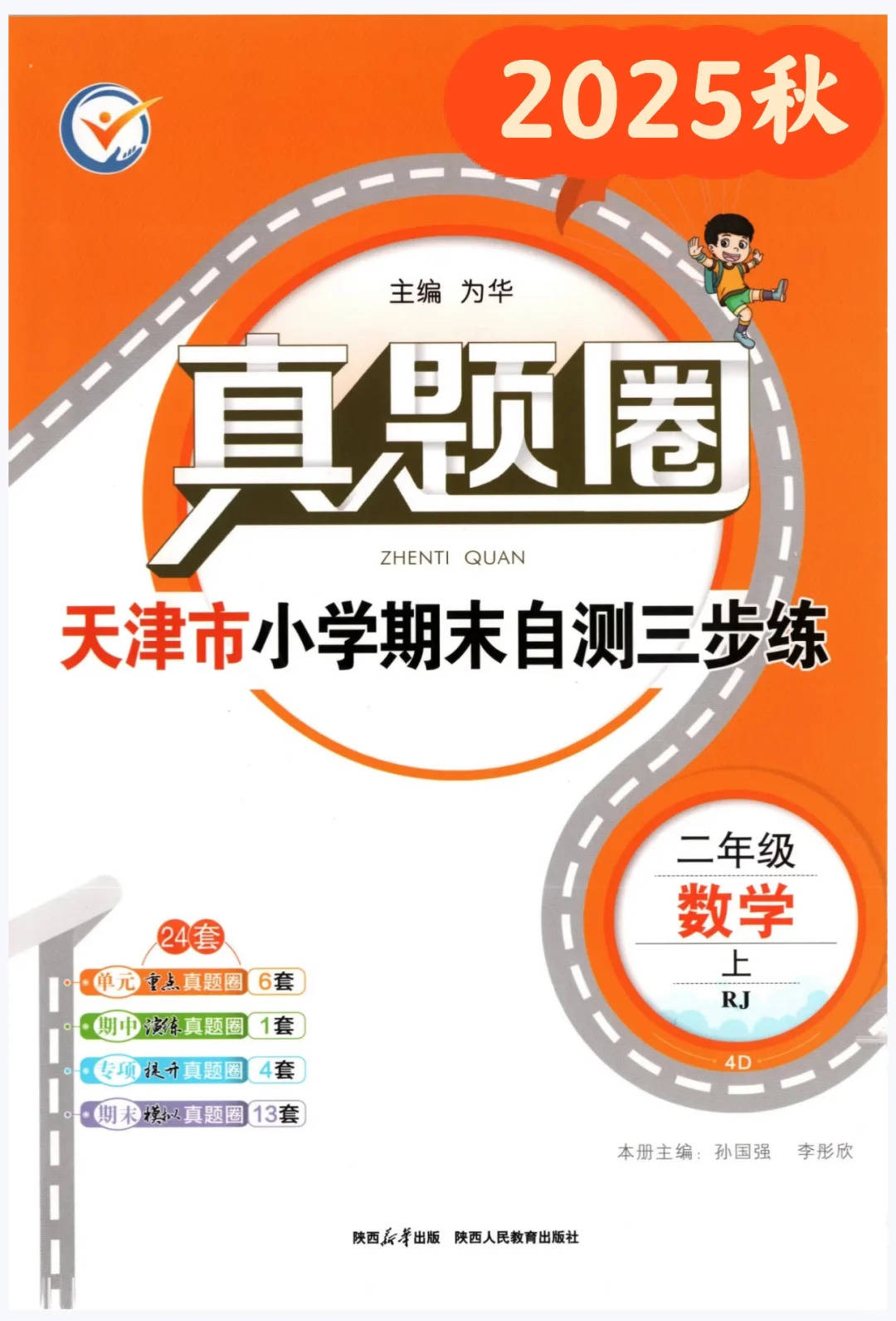 天津二上数学提分|这套真题卷太对症了, 天津二年级宝妈别瞎买练习册了!人教版数学的重点难点,这套《真题圈》直接拿捏得明明白白, 娃总在进退位计算、图形数角、时间认读上丢分?这本书全是天津本地名校真卷,精准对准本地考点。不管是两位数加减的借位问题,还是几何图形的特征辨析,考什么就练什么,比盲目刷题高效10倍。 最贴心的是“三步练”设计: 1. 单元学完做考点卷,及时夯实基础; 2. 中期练阶段卷,查漏补缺不掉队; 3. 考前刷专项+模考卷,冲刺提分有方向。 每道题都标了易错点,答案解析单独成册,家长辅导不费劲儿。扫码还能领更多历年真卷,练透这些,期末稳了~