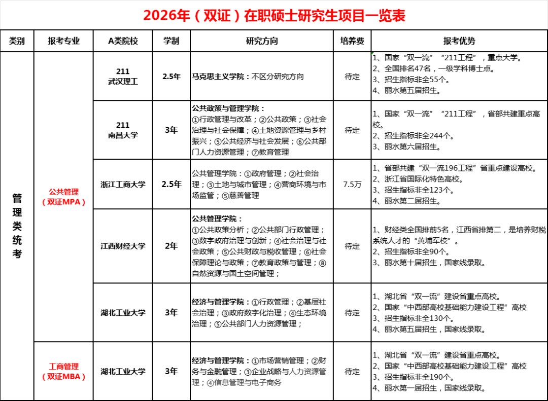 为了提高2026年报考管理类统考考生录取率,丽水开大教学点十几年来一直全程特聘浙大、浙师大、南京等知名高校MBA、MPA名师举办考前辅导班,历年上线率高;报全程辅导班《免费赠送全程网课+辅导资料》,欢迎大家报班!