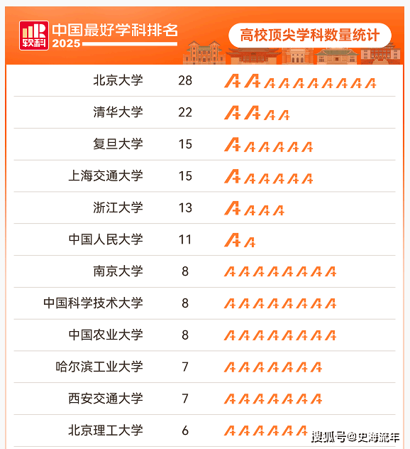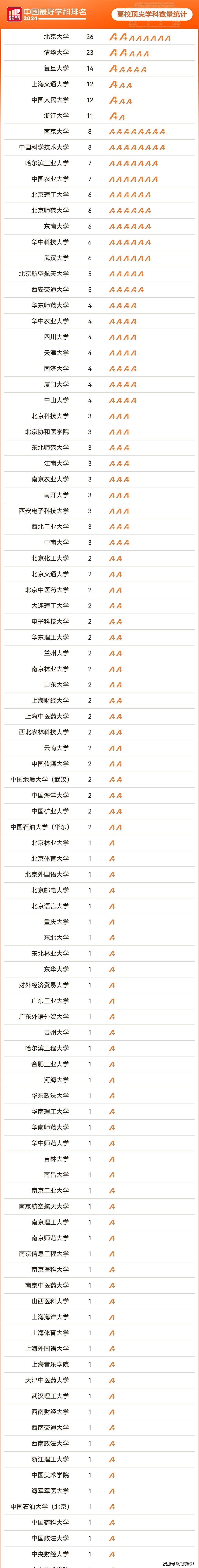 清华北大下降,复交浙数量增加,2025软科最好学科数量排名出炉