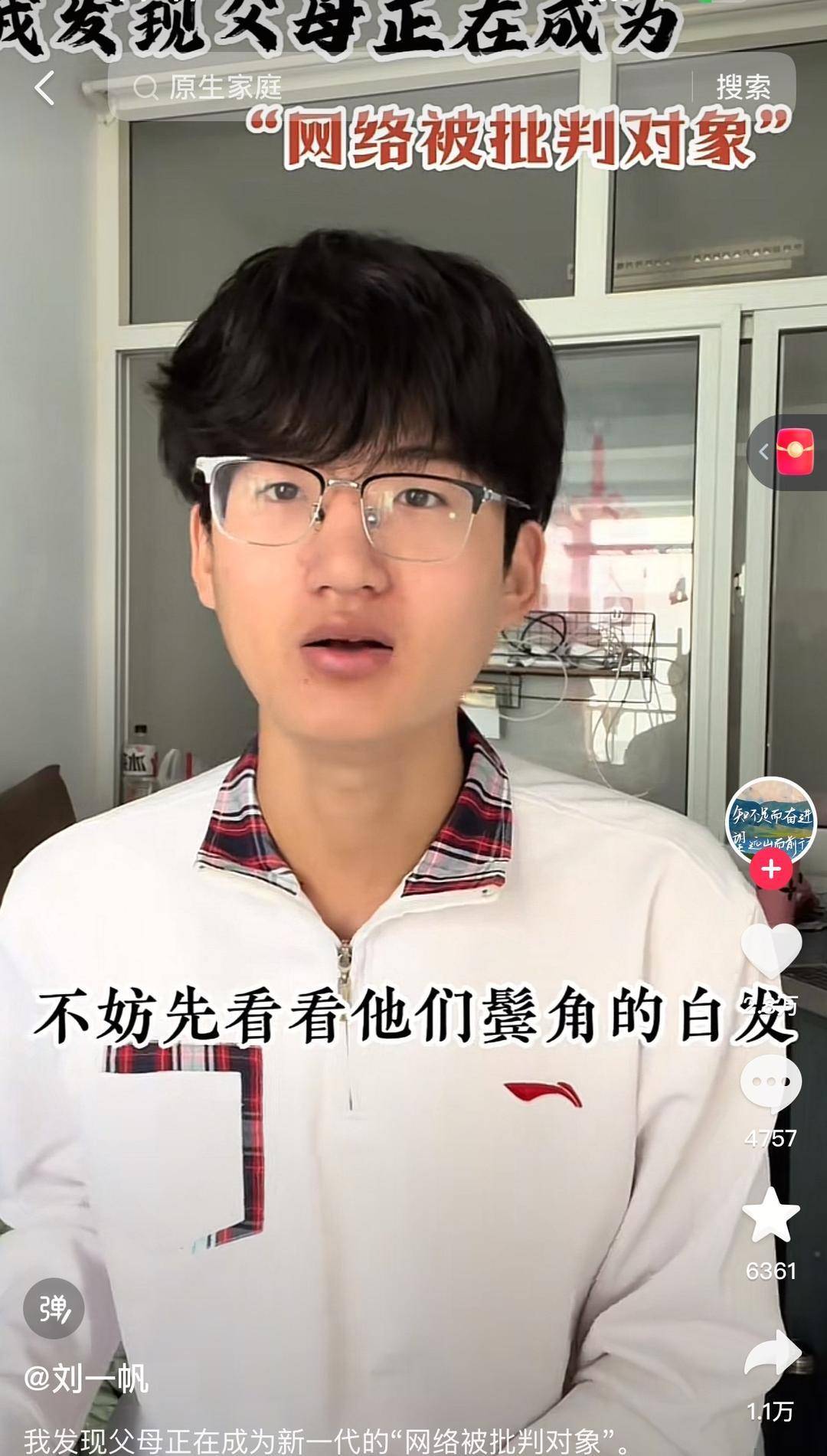 “当我长大后,一定要离父母远远的。”在如今的网络世界,“原生家庭”成为一个热词。“00后”男生刘一帆在社交平台发视频表示,他发现父母已然成为新一代在网上被攻击的靶子,一些人把成长中的种种不幸归结于原生家庭,父母则成了反派角色。近日,刘一帆公开为父母发声的视频获得不少点赞,他也因此被称赞为“全网最清醒的孩子”。
