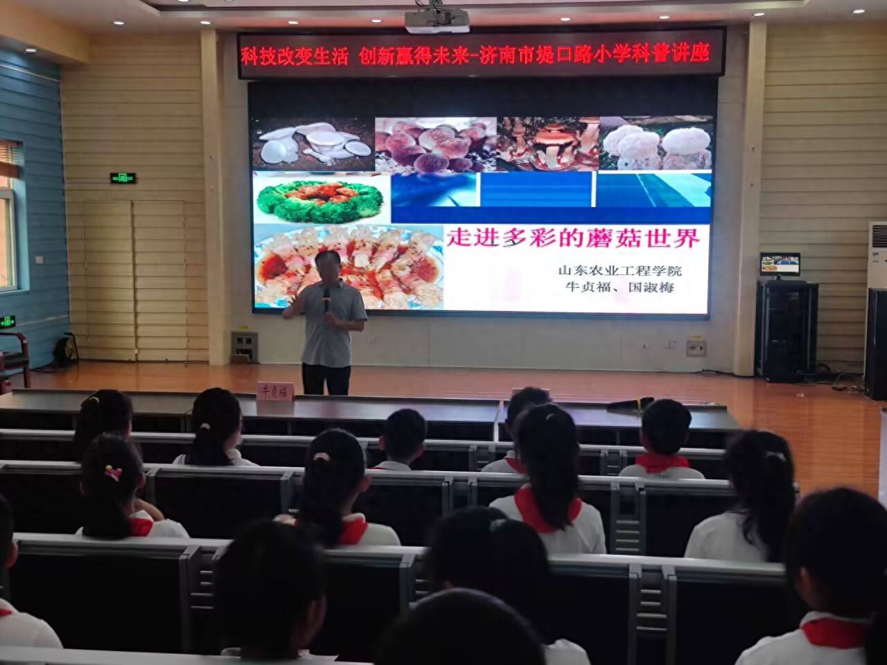 “你见过哪些蘑菇?吃过哪些蘑菇?”讲座伊始,山东农业工程学院教授牛贞福以贴近生活的互动提问打开话题,瞬间勾起同学们的好奇心。现场同学纷纷举手分享自己的经历,讨论声此起彼伏,在热烈的氛围中拉开了科普讲座的序幕。