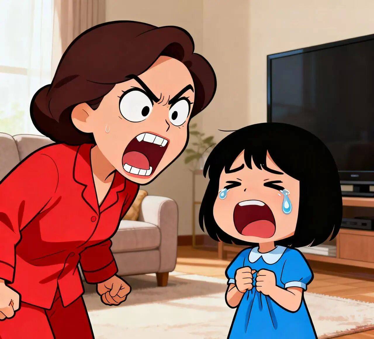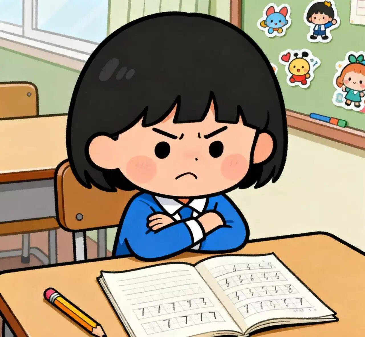 她一边哭一边拿作业,还是不好好写,越看越来气,忍不住打了一顿。