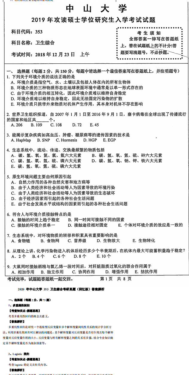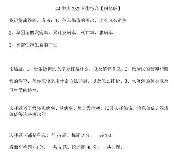 选择题考了很多患病率、发病率、累计发病率、以及选择偏倚、信息偏倚、混淆偏倚等这些概念的