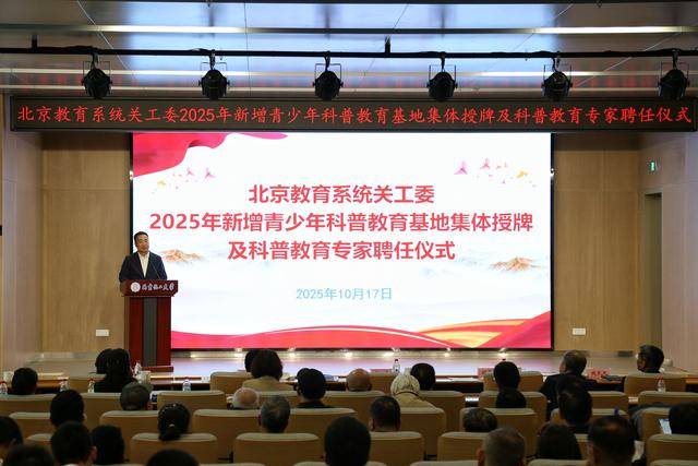 10月17日,北京教育系统关工委为15家青少年科普教育基地授牌、为37名科普教育专家颁发聘书,整合高校、中国科学院、中国社科院等科研院所和机构,助力中小学科学教育资源进一步扩容。依托教育基地,“百所中小学科普教育高校行”活动将持续开展,中小学生将跟随院士专家探秘前沿科技成果。