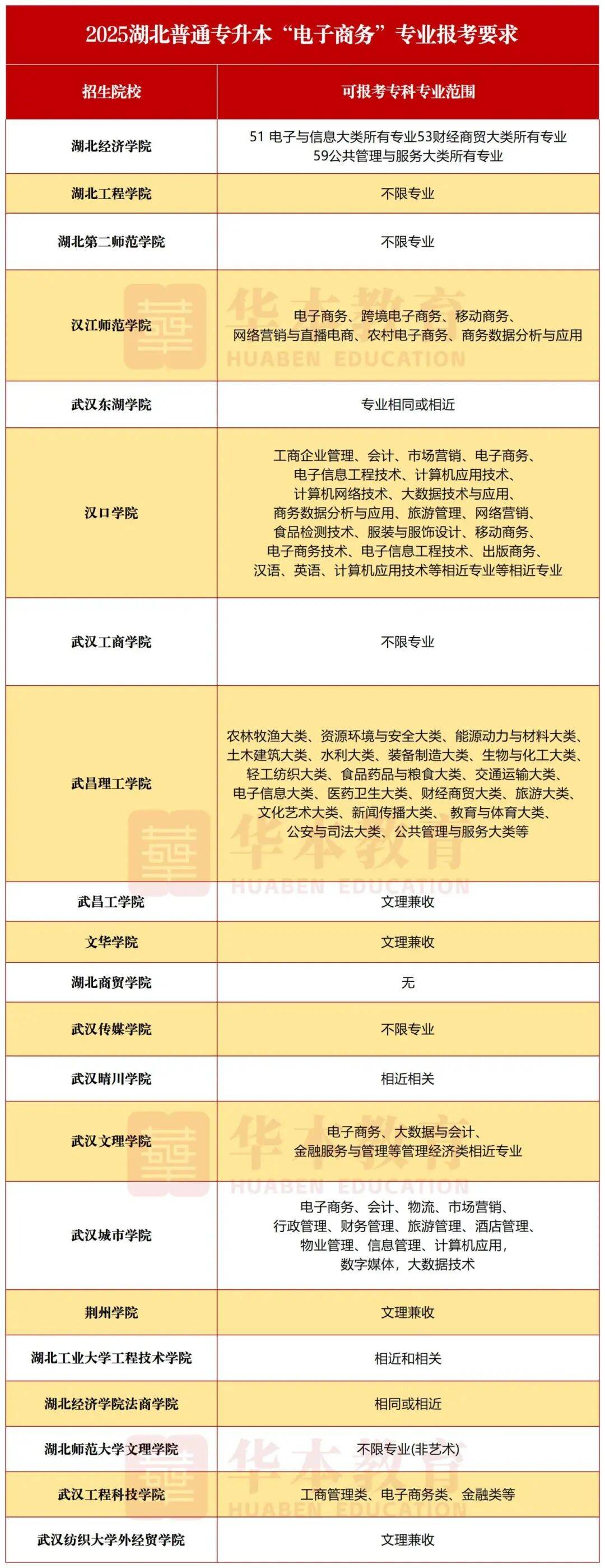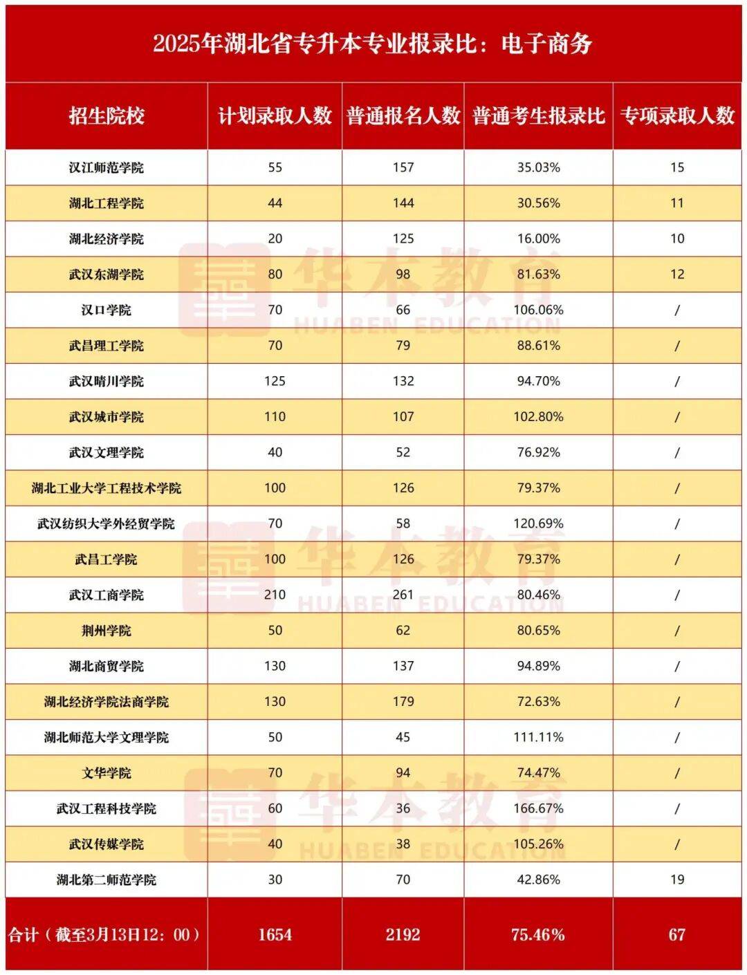 2025年湖北普通专升本招收电子商务专业的学校有20所,相比于2024年新增了2所,停招了3所