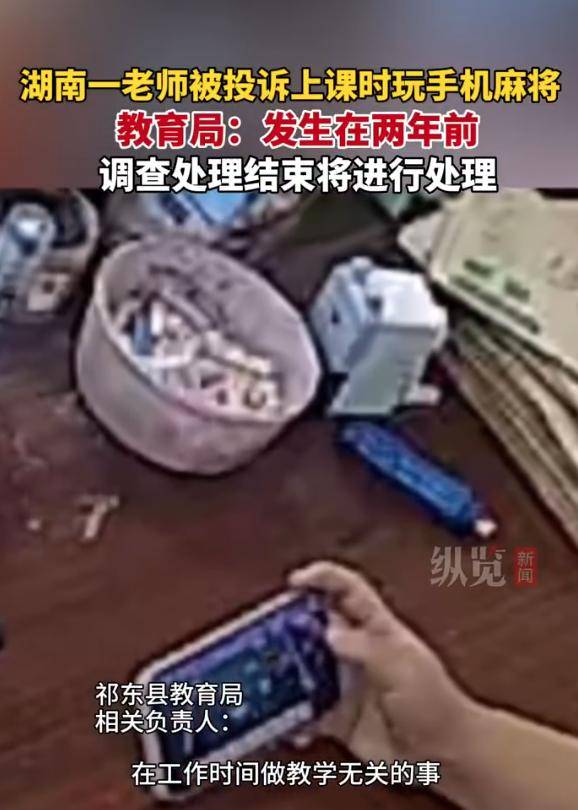 10月16日,祁东县教育局在线答复称,网友反映的情况发生在2023年10月,教师胡某莉在学校上自习时打开手机观看麻将游戏竞赛直播,以此放松娱乐,将对胡某莉作出严肃处理。