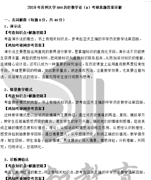 2010-2019年苏州大学869历史教学论考研真题答案详解
