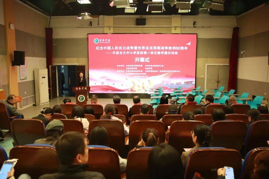 10月17日下午,纪念中国人民抗日战争暨世界反法西斯战争胜利80周年许昌市大中小学思政课一体化教学展示活动在许昌学院蕴韬楼B合七演播厅举办。本次活动由中共许昌市委宣传部、中共许昌市委教育工委、许昌市教育局、许昌学院共同主办,许昌学院党委宣传部、教务处、马克思主义学院承办。