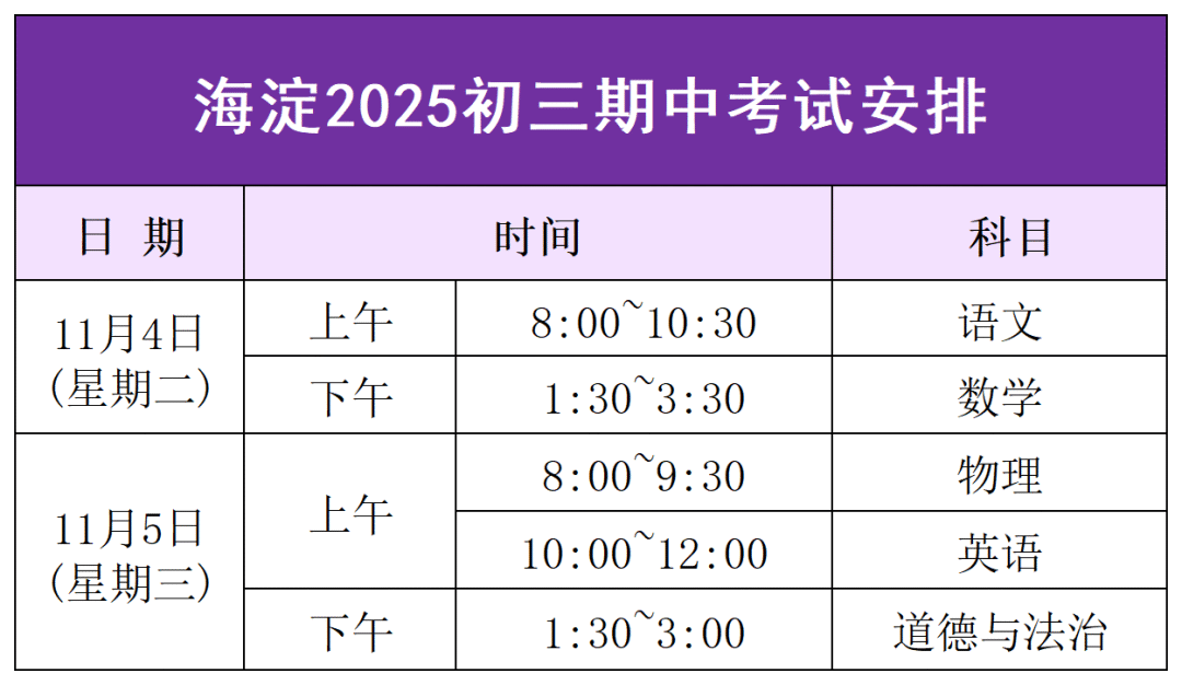 北京多区已公布初中期中考试安排,考试时间集中在10月底至11月中旬,部分区域考试范围同步明确。