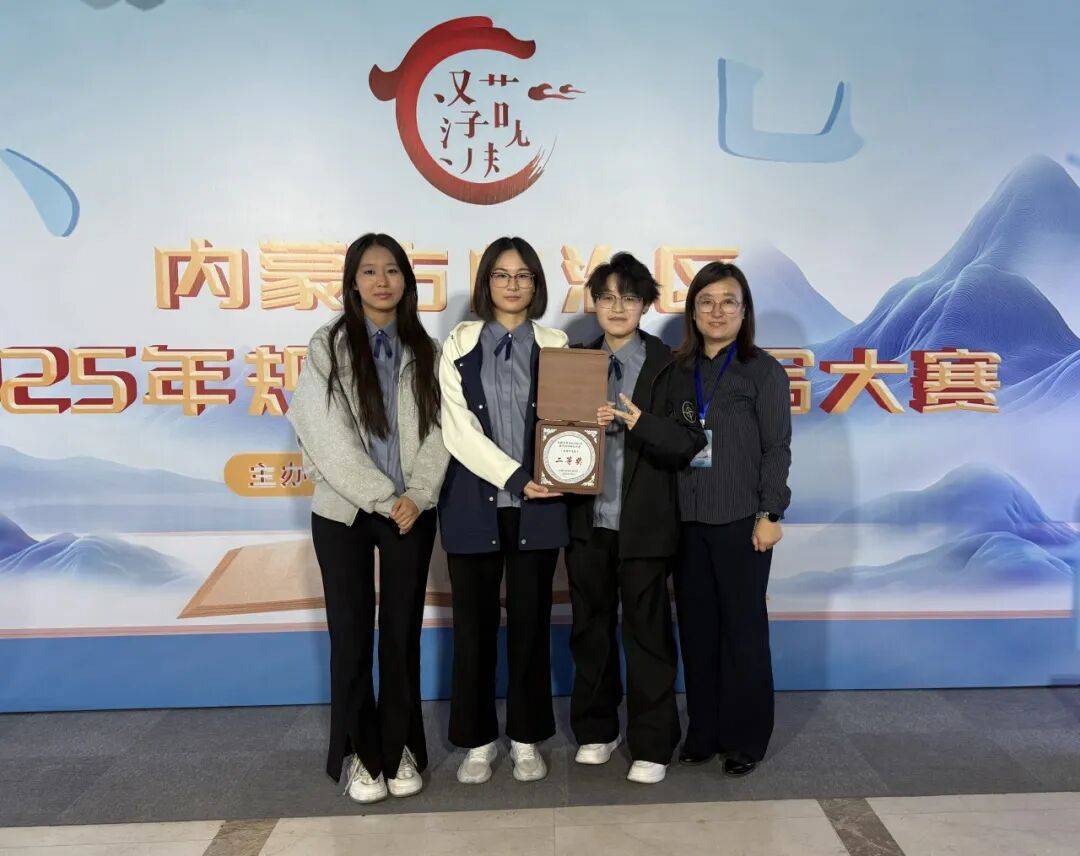 10月17日,内蒙古自治区2025年规范汉字听写大赛圆满落幕。本次大赛由内蒙古自治区教育厅主办,大赛共设置小学生组、初中学生组、普通高中学生组、中职学生组、高职(专科)学生组、本科学生组及中小学教师组七个组别。本科学生组共有14支代表队参赛,经过激烈角逐,我校代表队取得本科学生组二等奖的优异成绩,图书馆刘玉琼获得优秀指导教师奖。
