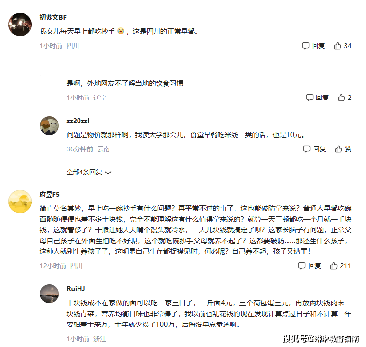 似乎在一些家长眼中,早餐吃清粥小菜、包子油条才是正常的,但不同地区的饮食文化本就差异较大,在其他省份家长眼中油腻的红油抄手,对于四川当地人来说却是很常见的早餐选择。
