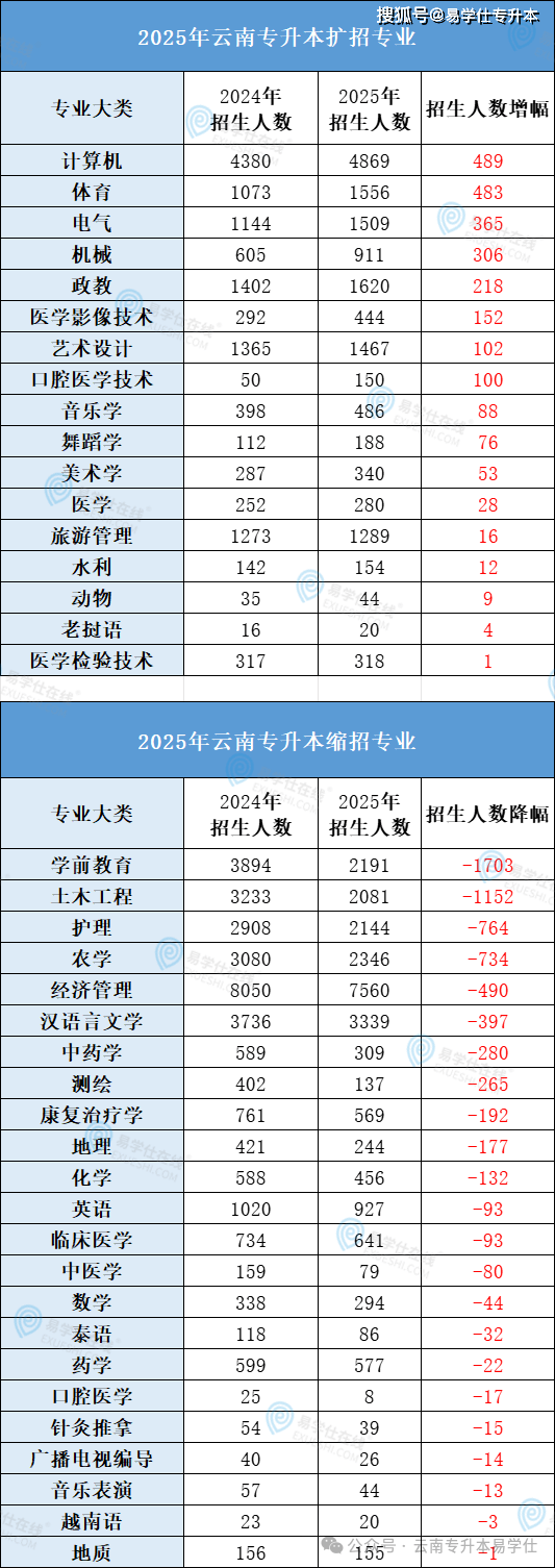 近年云南专升本招生格局变化明显,公办院校缩招、民办院校扩招成为主流趋势: