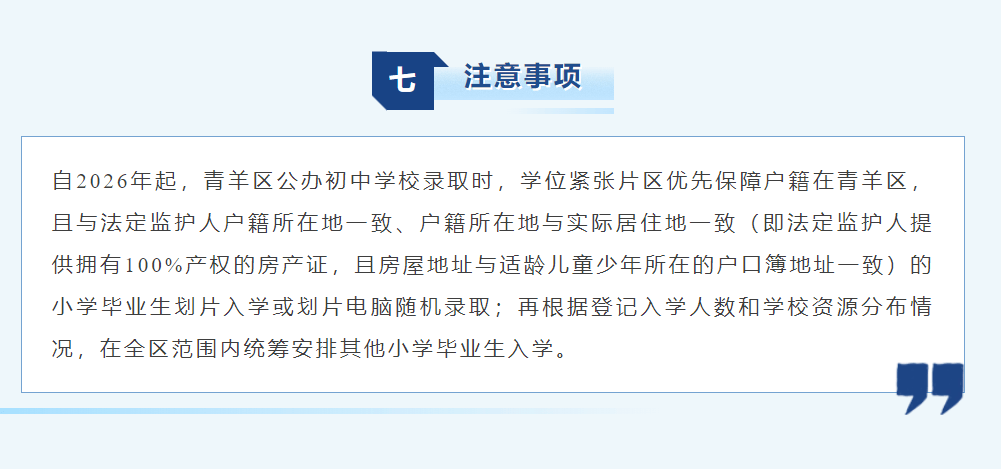 简单说就是从2026年开始,学位紧张的片区,优先录取户籍在青羊区且满足“双一致”的学生。