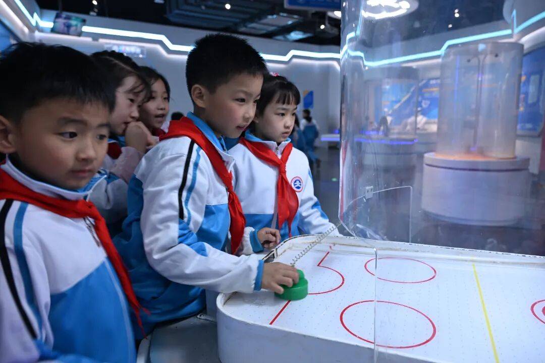 智能互动区:挥手操控大屏,复兴号、C919在眼前飞驰,与机器人对话,当听到“这些都是中国自主研发的科技成果”时,孩子们眼中满是自豪,感受到中国科技的力量。