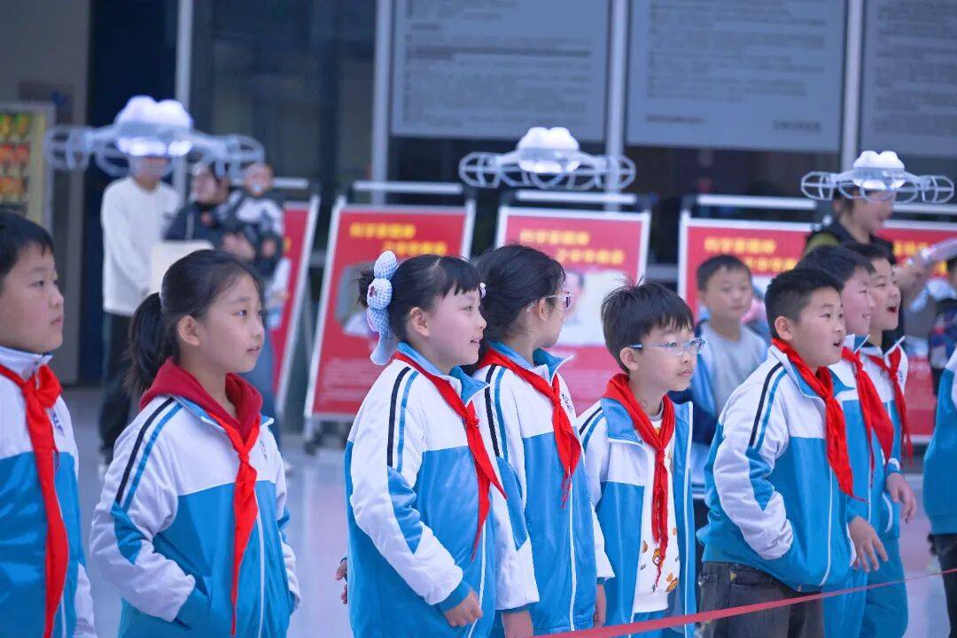 孩子们带着课堂的疑问与对科学的期待走进科技馆。一场精彩的无人机表演拉开了探索的序幕:无人机如精灵般在空中变换队形,时而如环舞升腾,时而如星光洒落,引得孩子们阵阵欢呼。