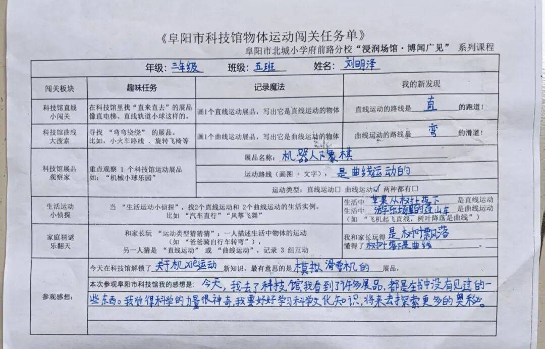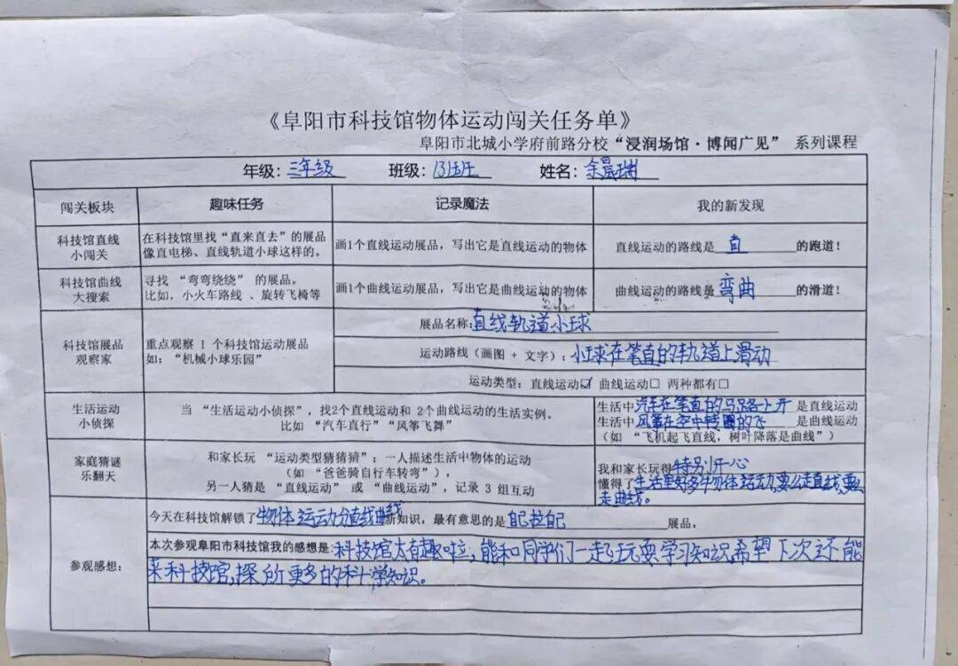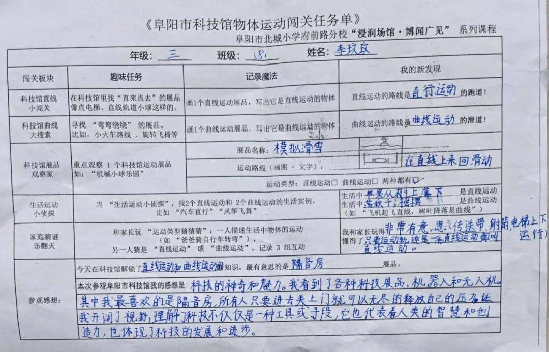 出发前,常浩宇老师早已在科学课上做好知识铺垫:通过生动的课件,把“物体运动”等抽象知识点讲得浅显易懂;还特意布置了一份特殊的作业——带着“‘物体运动’在生活中如何体现?”的问题去科技馆探索,让课本知识提前与真实场景“连线”,让学习不再局限于黑板与课本。