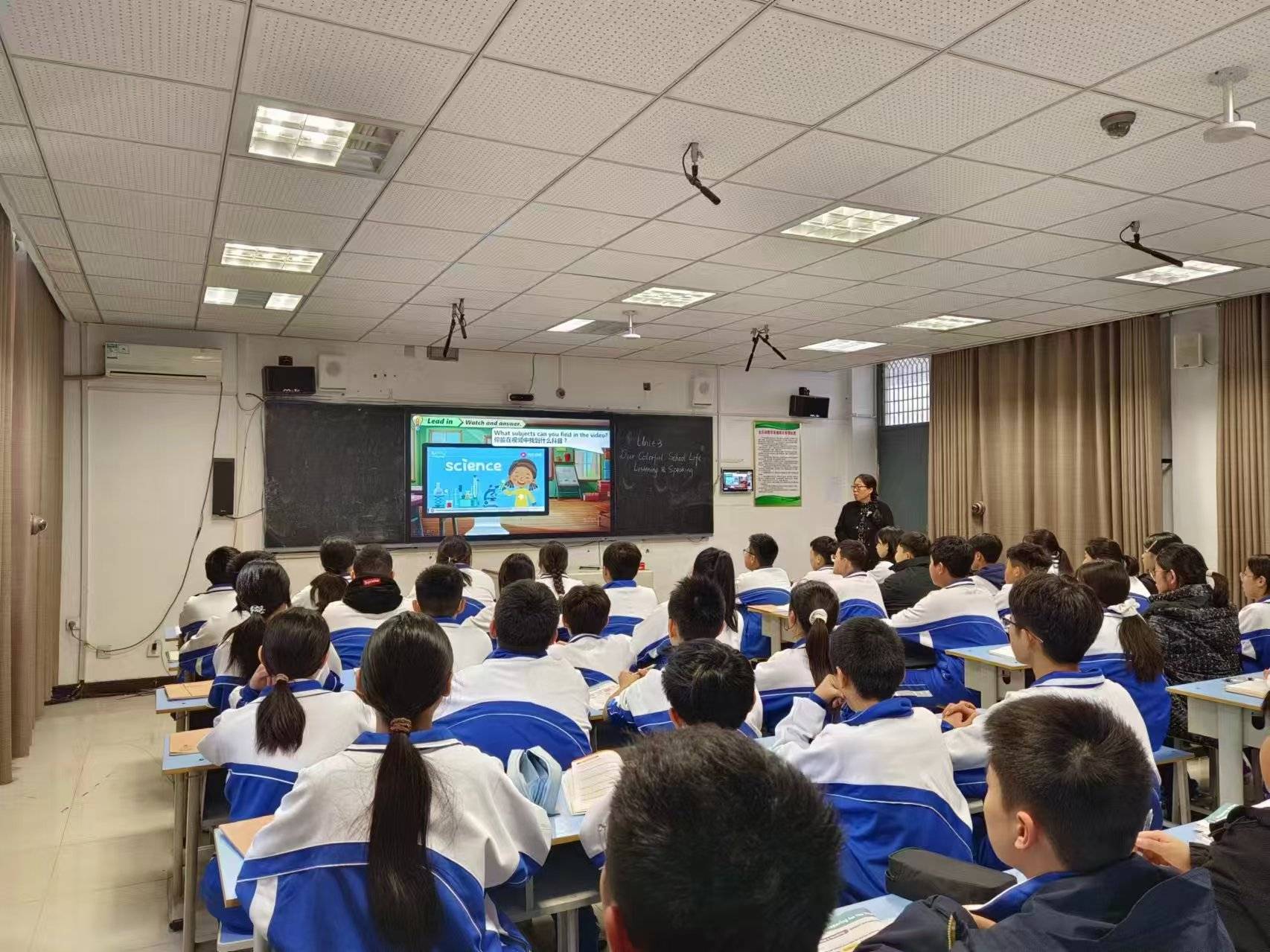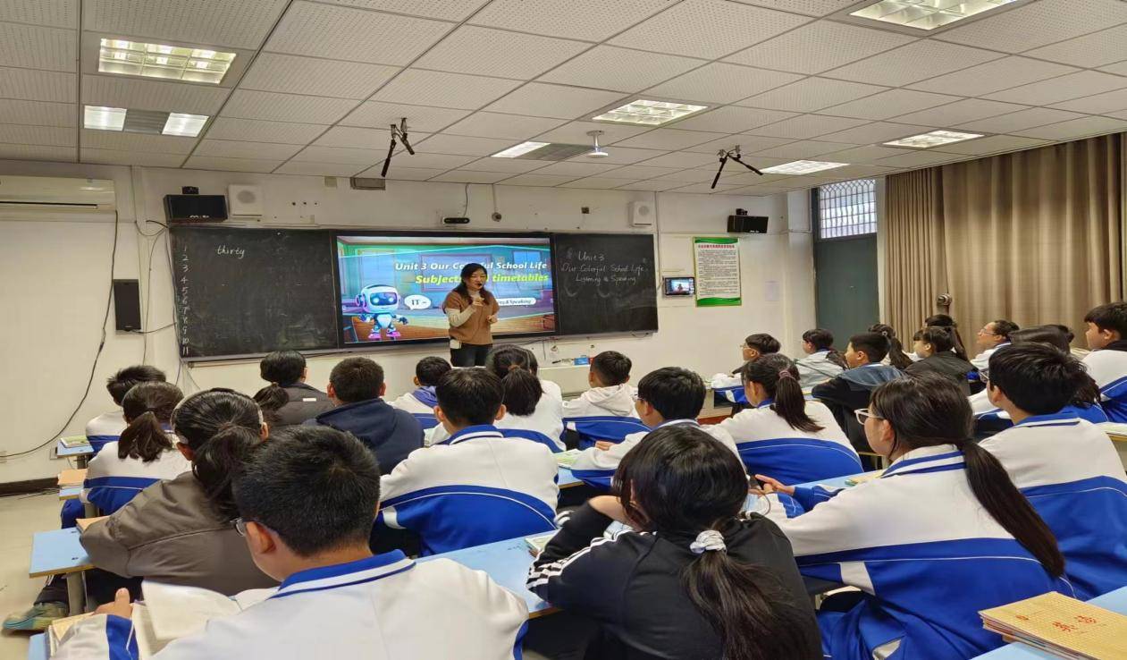 10月29日下午七年级上册 Unit 3“Our Colorful School Life(Subjects and Timetables)” 为主题的 Listening&Speaking 公开课顺利开展。本节课巧妙融合时间表达与学科内容两大核心知识点,针对初一学生基础薄弱的特点,通过层层递进的教学设计与丰富互动,让学生在轻松氛围中掌握语言技能,展现了高效且富有活力的英语课堂教学模式。