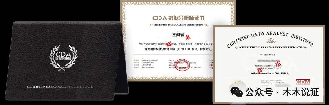 提升是 “因”,考证是 “果”,二者形成闭环:通过系统学习提升技能(因),借助考证完成能力认证(果),再用证书敲开职场大门,最终在工作中进一步提升能力。比如学习数据分析技能后考取 CDA 证书,证书帮你获得岗位,岗位实践又能支撑你考取更高级别的 CDA 认证。