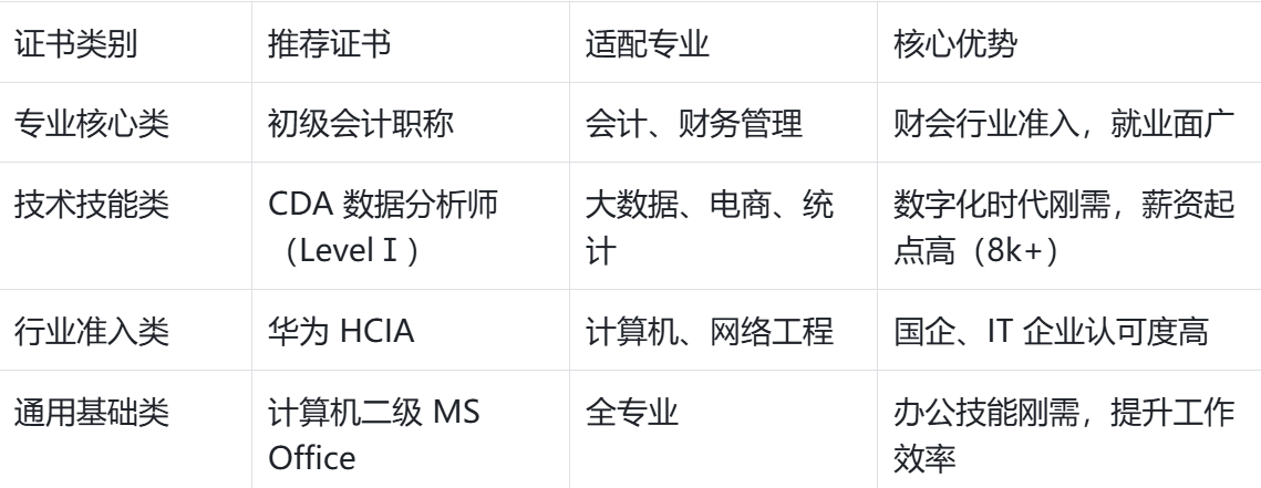 阶段 1:明确方向,筛选核心证书(大一大二)