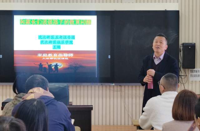 王老师为家长们带来了一堂别开生面的家庭教育课。他结合自身丰富的人生阅历与专业的教育理念,从责任担当、品格塑造、亲子沟通等多个维度,用鲜活的事例、真挚的话语,为家长们提供了科学实用的家庭教育方法,引导家长们注重言传身教,用爱与智慧陪伴孩子健康成长。整场讲座干货满满、感染力强,赢得了家长们的阵阵掌声。