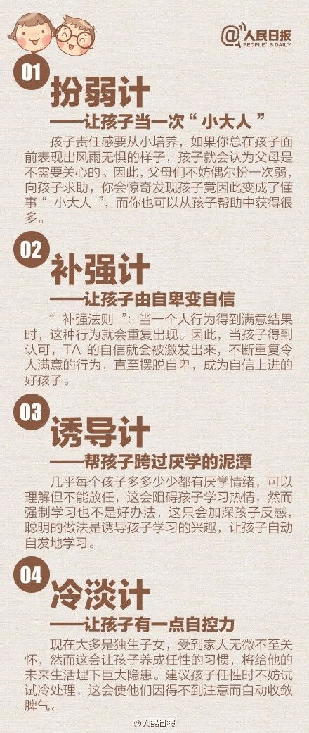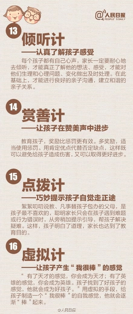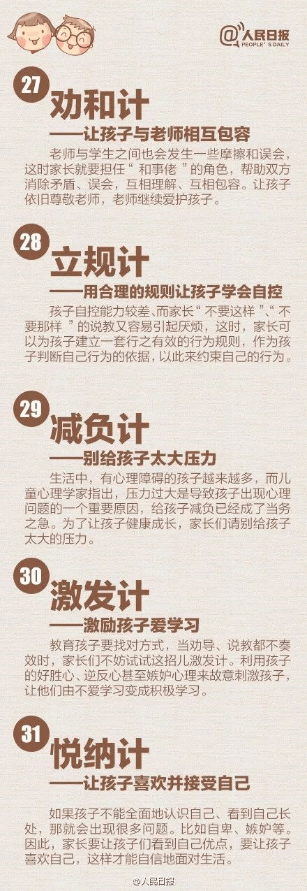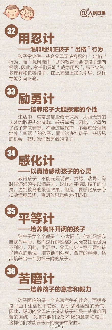 人民日报向家长们推荐了“教育36计”,极为实用,转发分享给所有父母们。