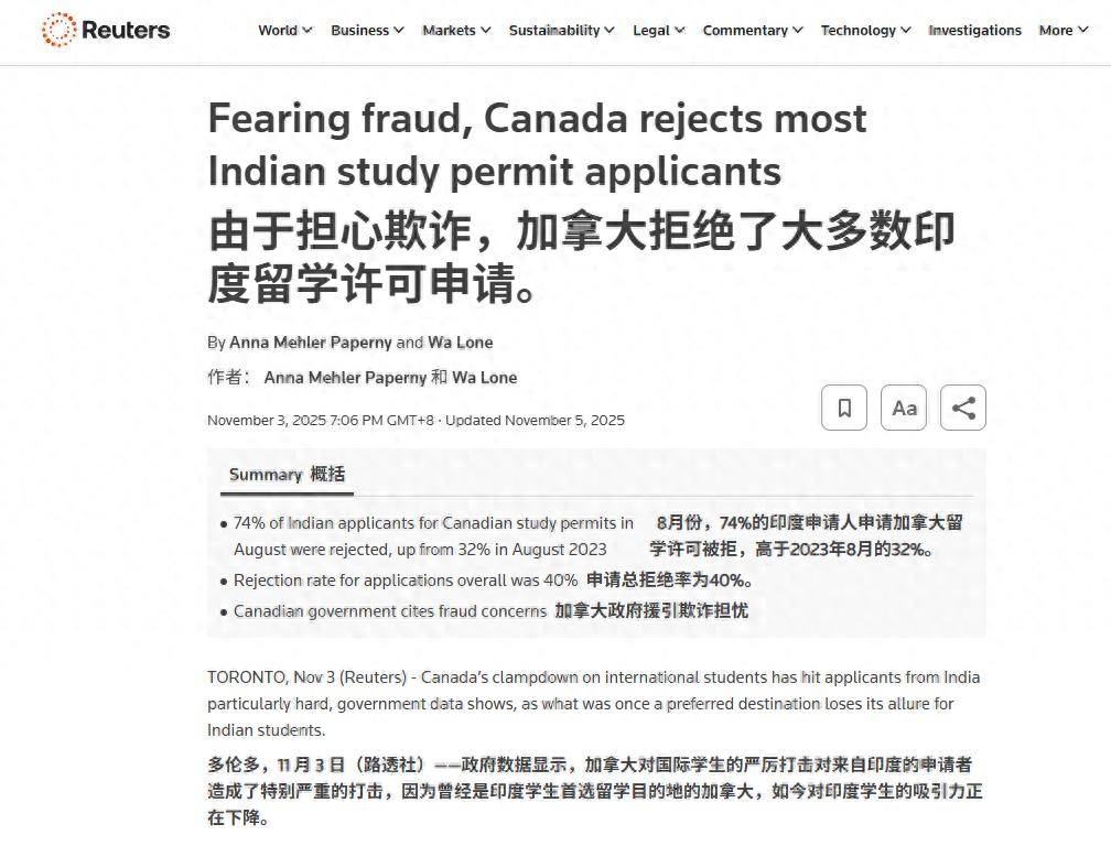 加拿大此次收紧签证政策,实际上是一种“纠正运动”,旨在修正过去十年过度依赖国际学生,忽视社会承载力的做法。同时,它也给所有外国申请人,特别是印度申请人敲响了警钟:如果你不是纯粹的学生,只是把留学当作快速移民的通道,那么加拿大的大门已经关上。