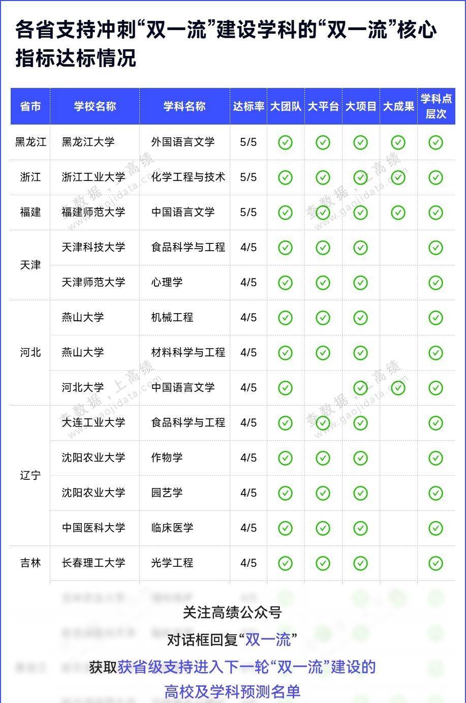 基于省级政策文件有冲刺“双一流”导向的高校及学科(不完全统计),高绩重点分析这些学科在“双一流”核心指标上的达标情况。