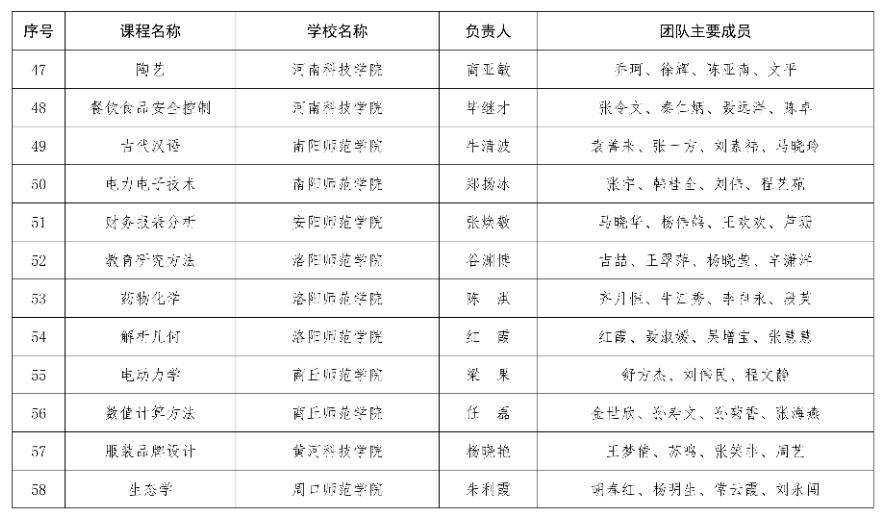 河南省教育厅关于2025年度河南省本科高校精品课程拟立项建设名单的公示