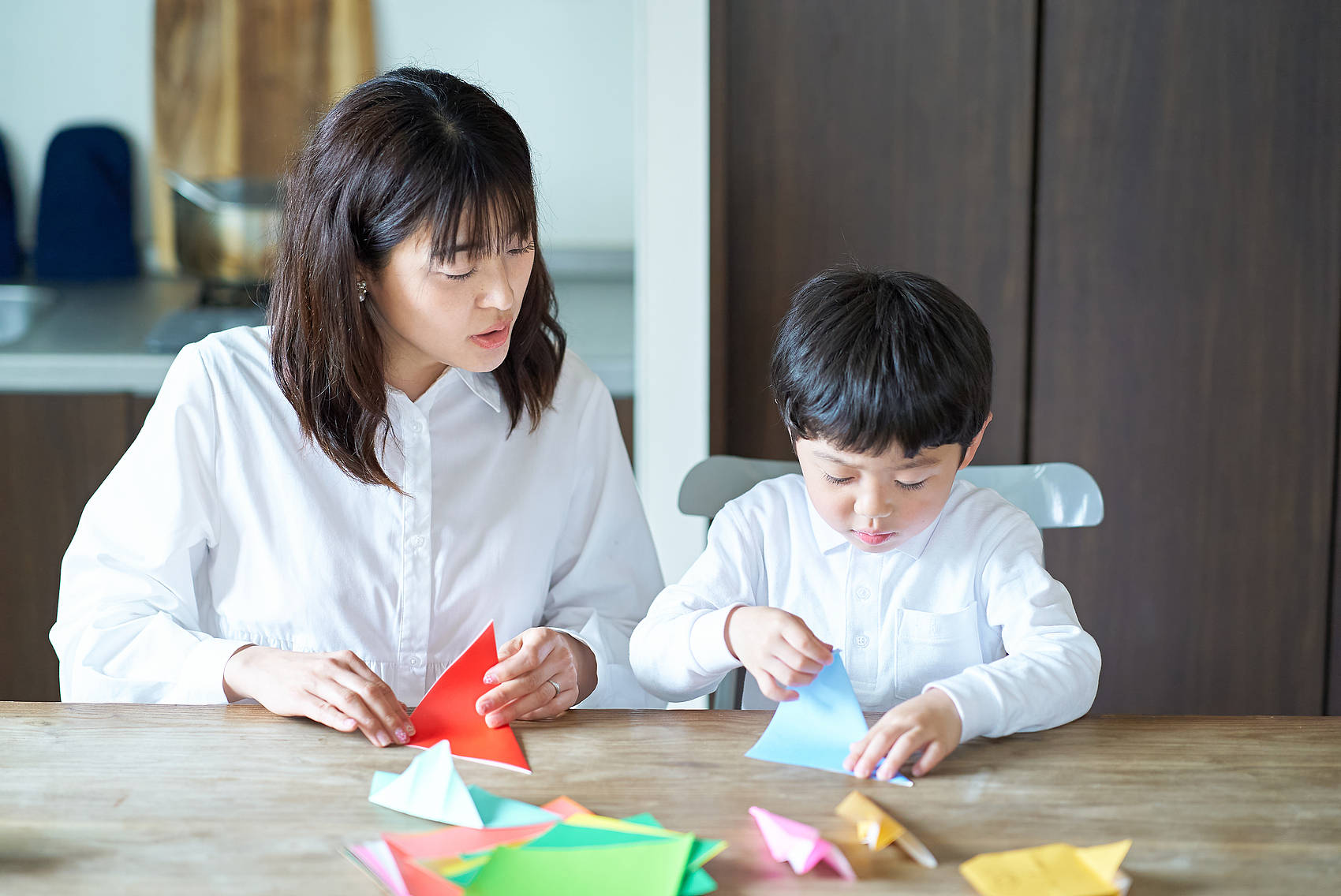 亲戚家的孩子刚拿起足球想下楼,就被他拽回来剪彩纸。