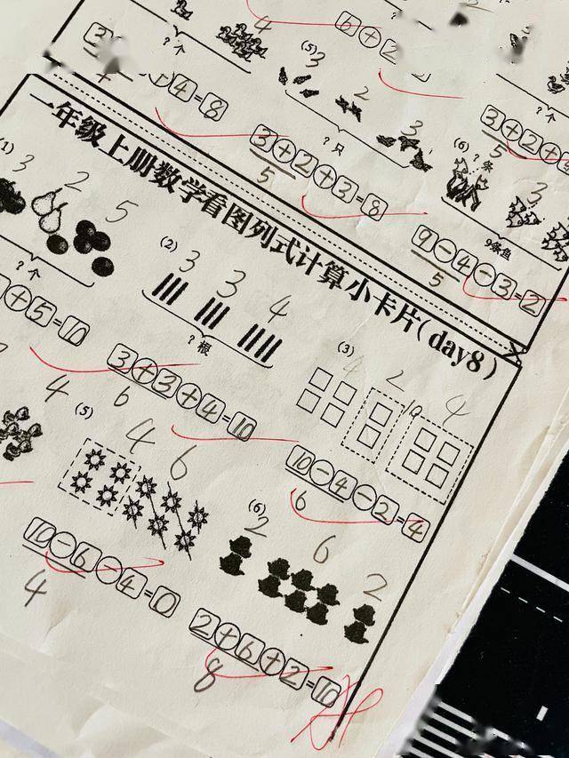 到学习连加、连减时,也是这样的看图列算式,他一下就做对了。