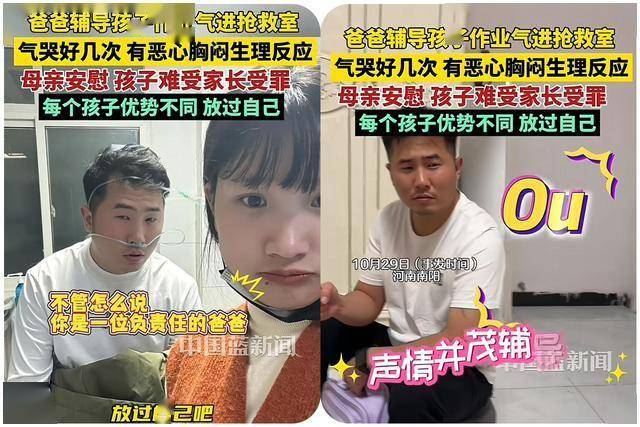 10月29日,河南南阳,有一位爸爸辅导一年级孩子写作业,竟然被气得大脑缺氧,手抖、心慌、气闷,就进了急救室。医生说:是被气的,放平心态。