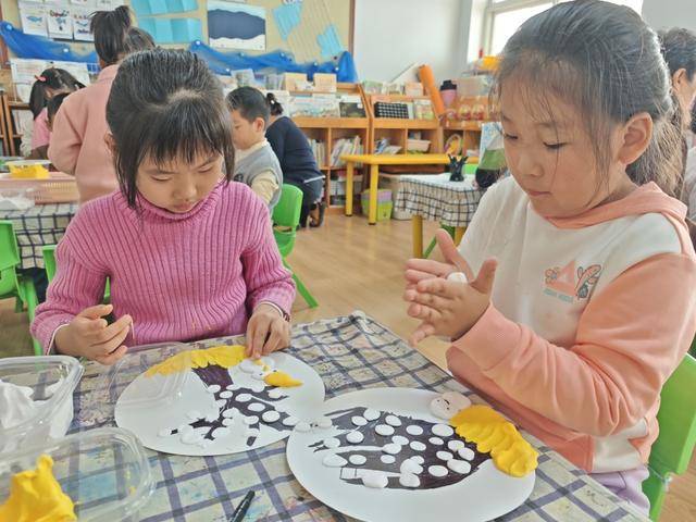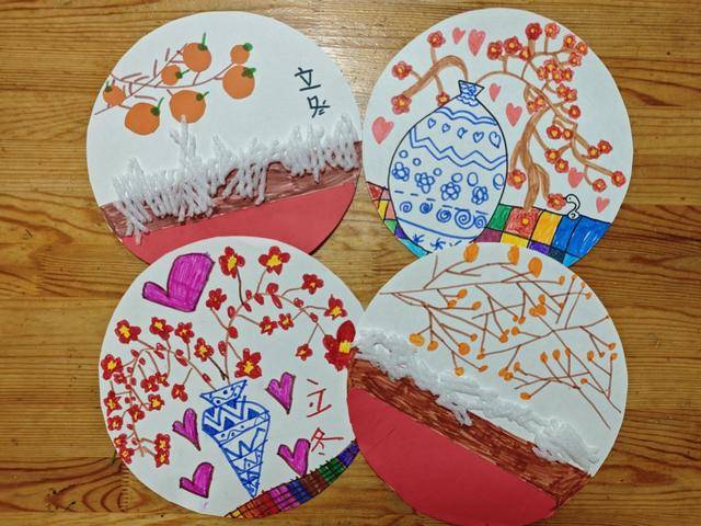 小班级部的“冬日小桔灯”,将普通的橘子变成了散发暖光的艺术品、山楂雪球,小巧可爱的作品充满童真;中大班的小朋友们发挥想象力,融合绘画、泥工、拓印、制作等创意美术形式,在剪、贴、画、塑中感受初冬的美好,也让冬天的氛围在教室里“看得见、摸得着”。