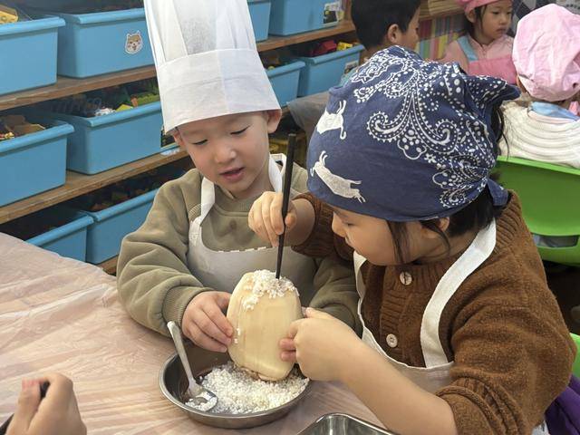 如果说了解知识是“知”,那么亲手制作便是“行”。本次立冬活动,在知行合一中让太湖幼的食育工坊热闹非凡。