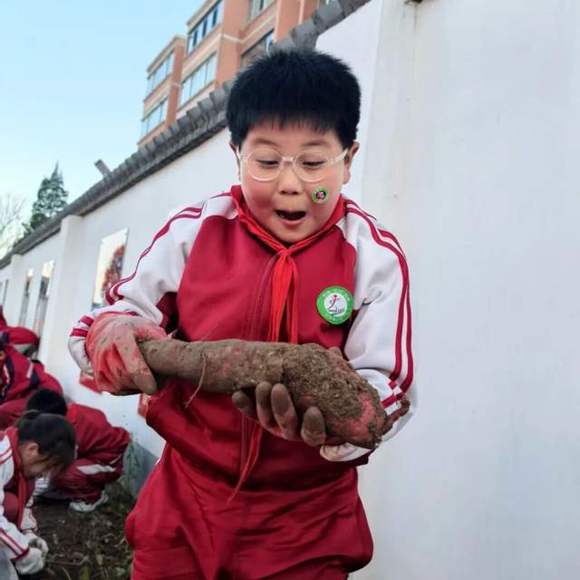在红薯种植区:铁锹入土时的清脆声响与欢呼声交织成独特的田园交响曲。孩子们很快发现,看似随机分布的红薯实则暗藏玄机——靠近主根的往往体型硕大,边缘地带则多是细长型。
