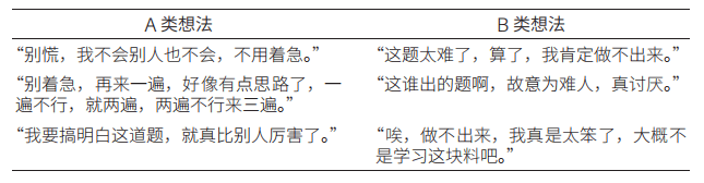 在学习系统内部,价值决策居于核心位置,负责为识别驱动、语义解析等其他四个模块提供心理支持,是连接学习(认知心理)和非认知心理的关键枢纽。在宏观层面,价值决策往往会决定一个孩子整体的学习状态。如果价值决策有缺陷,孩子可能会表现出对学习缺乏兴趣、学习动力不足、做事意志力薄弱、自信不足、低挫折容忍力等问题;如果价值决策良好,孩子则会表现出明显的学习主动性,不怕困难和失败,具有强大的心理韧性和自信心等。在微观层面,价值决策无时无刻不在影响着孩子的学习过程。回想一下,当你遇到一道难题时,你心里会怎么想?多数人会有以下两种想法。