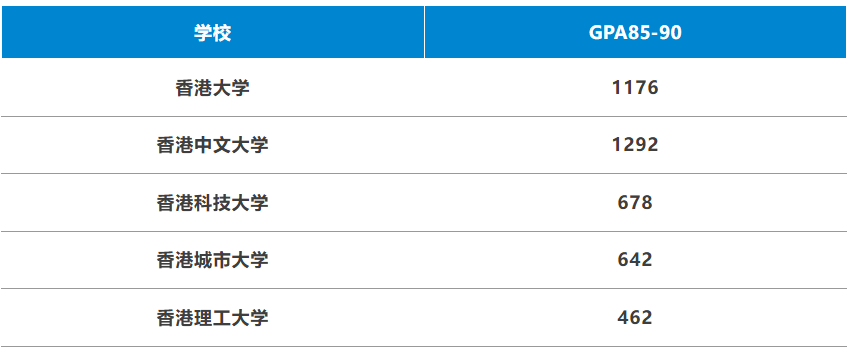 均分85-90,是申请港五院校的主力区间。这个分数段的申请者数量不少、竞争尤为激烈。