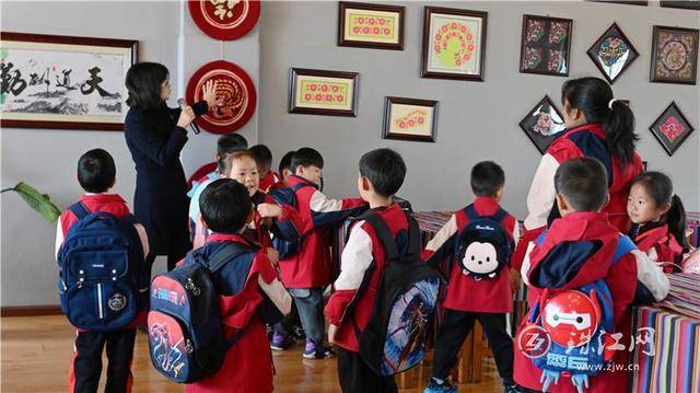 随后,在东风小学讲解老师的引导下,孩子们依次参观了学校的各个功能室:音乐室里,手碟空灵清脆的敲击声如雨滴落玉盘,让人沉醉;茶艺坊内,各式精致典雅的茶器具静静陈列,无声诉说着千年传承的雅致韵味;扎染坊中,蓝白相间的花纹、灵动别致的图案装点着四周悬挂的扎染布料,宛如一道道流动的彩虹;中医馆里,空气中飘散着草药的独特清香,一格格整齐排列的中药抽屉,仿佛藏着中医药文化的知识迷宫;图书室中,海量书籍分门别类整齐摆放,让习惯了幼儿园区域游戏的孩子们,第一次直观感受到“书海”的浩瀚与庄重;刺绣室里,老织布机厚重沉稳,哥哥姐姐们手下诞生的刺绣作品精美得令人屏息——这些不再是幼儿园里简单的捏捏、画画,而是需要耐心与技巧才能完成的匠心创作。