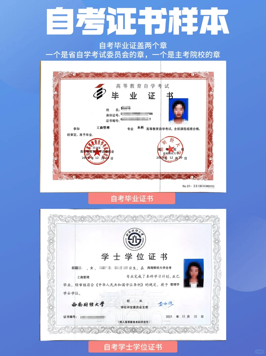 所有科目的成绩全部考过60分,即可到当地的教育考试院申请毕业证书。每个专业都有指定的考试科目,一般在11-15门左右。专业不同,考试内容不同。每年1月,4月和10月份的第二个/第三个周末,全国统一举行!每次可报考4科,自学考试取得的合格成绩长期有效。有条件的同学也可以选择报自考辅导班,费用在4千-5千左右