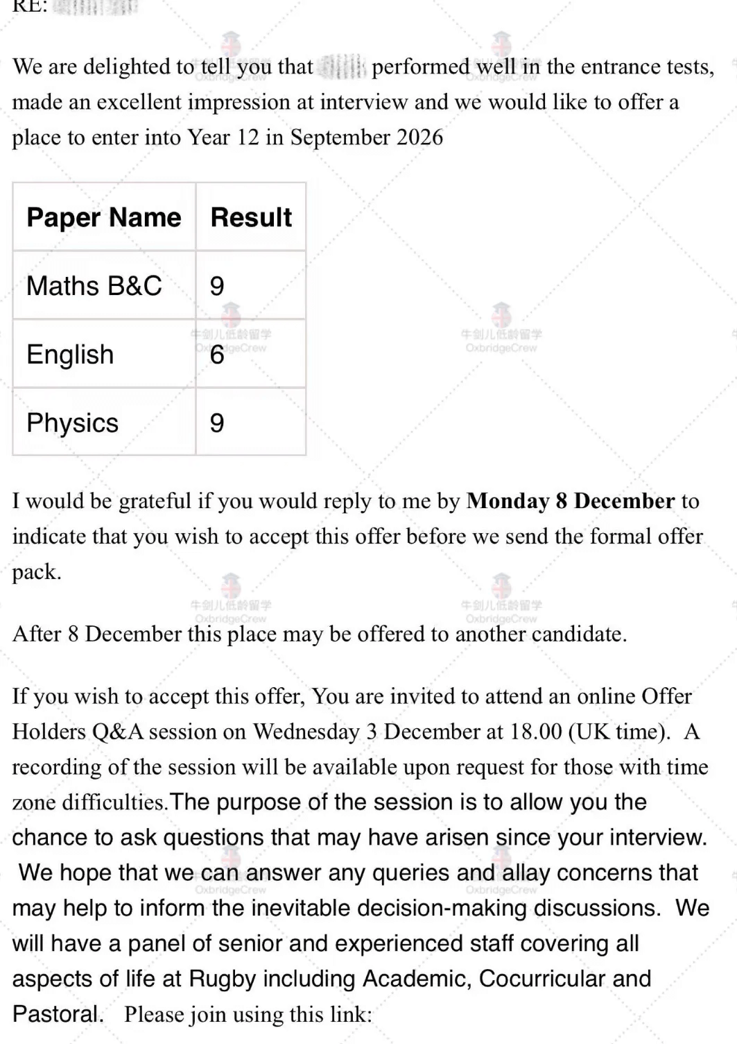恭喜小E同学收获3枚英国顶级私校的16+Offer,分别是: