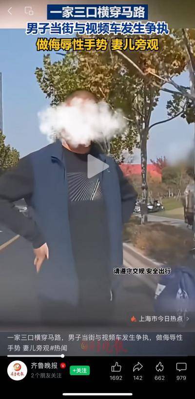 只见他面带挑衅,对着驾驶室竖起了中指,手势充满侮辱,嘴里还不停地叫嚣,示意司机“有胆就撞过来”。