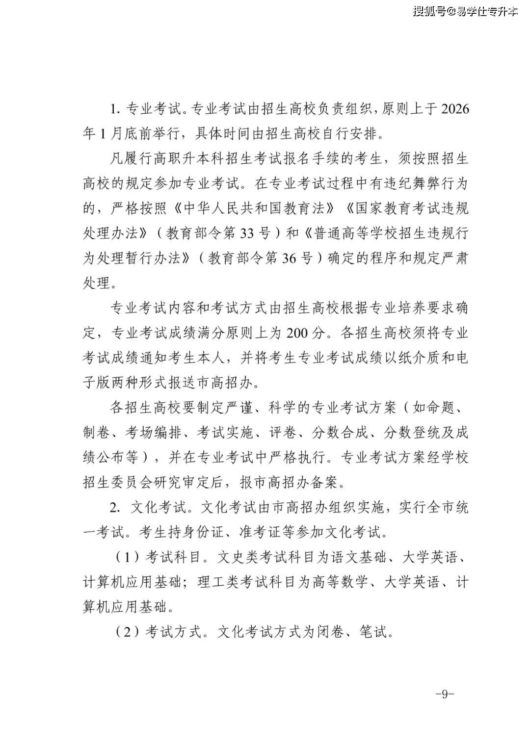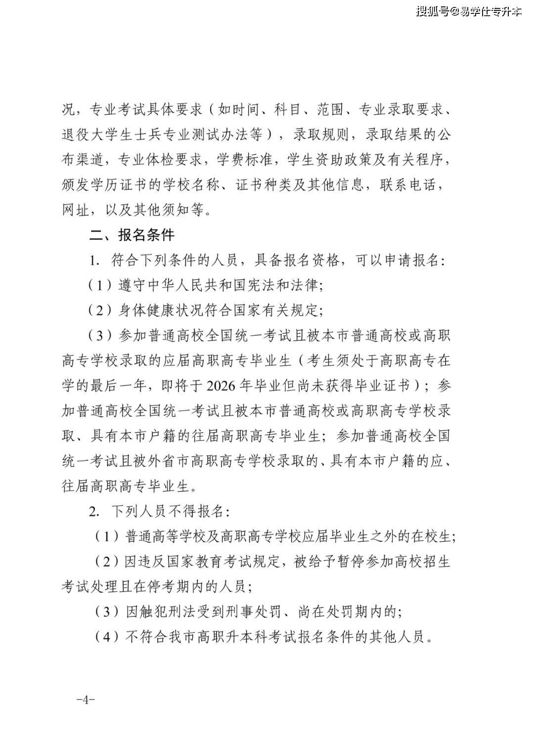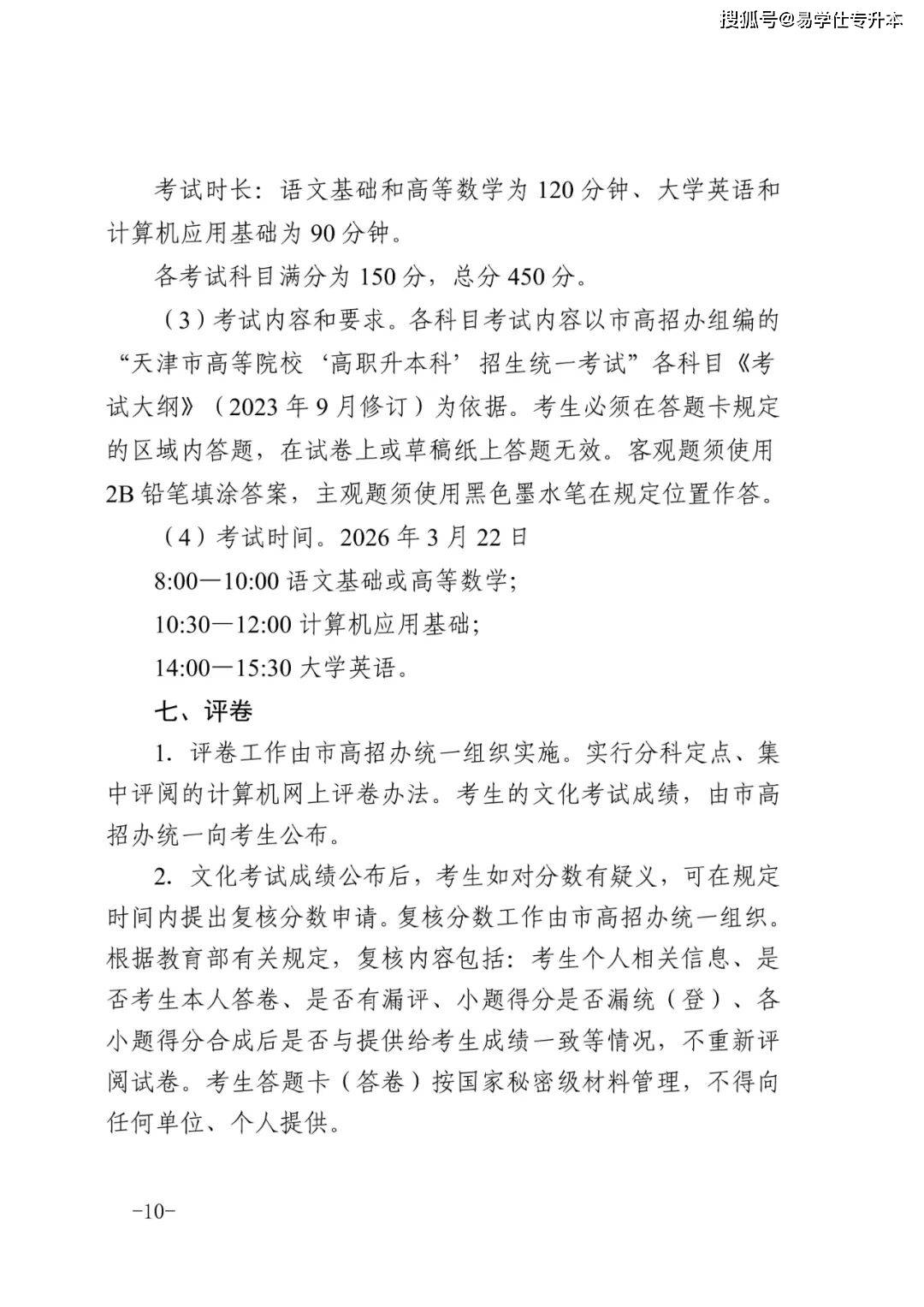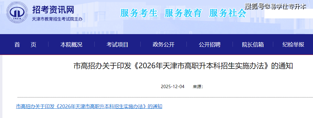 2026年天津市高职升本科招生实施办法