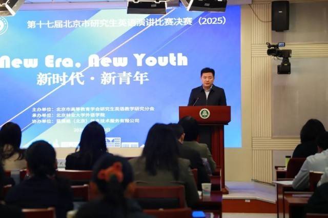 北京市研究生英语演讲比赛每年举办一届,旨在提升研究生英语综合应用能力,搭建高层次交流平台,为国家培养兼具家国情怀与国际视野的高素质外语人才。本届比赛以“新时代·新青年”为主题,特邀来自北京14所研究生培养单位的专家担任专业评委,并邀请两名外籍教师担任现场提问专家。